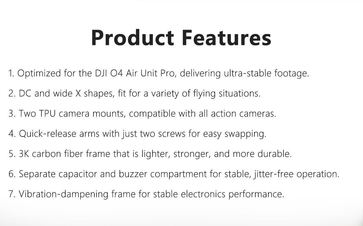 1. Equipped with DJI O4 Air Unit Pro for clear, reliable video transmission.