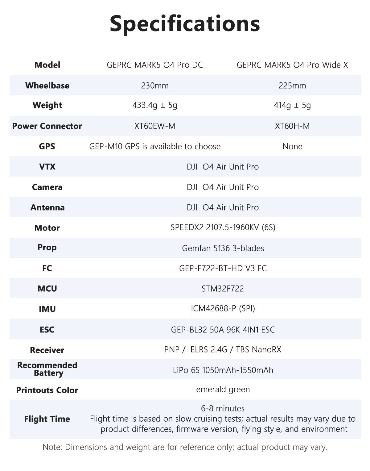 • Flight Time: 6-8 minutes(Based on slow cruising tests, the actual may vary due to product differences, firmware version, flying style, and environment. For reference only)
