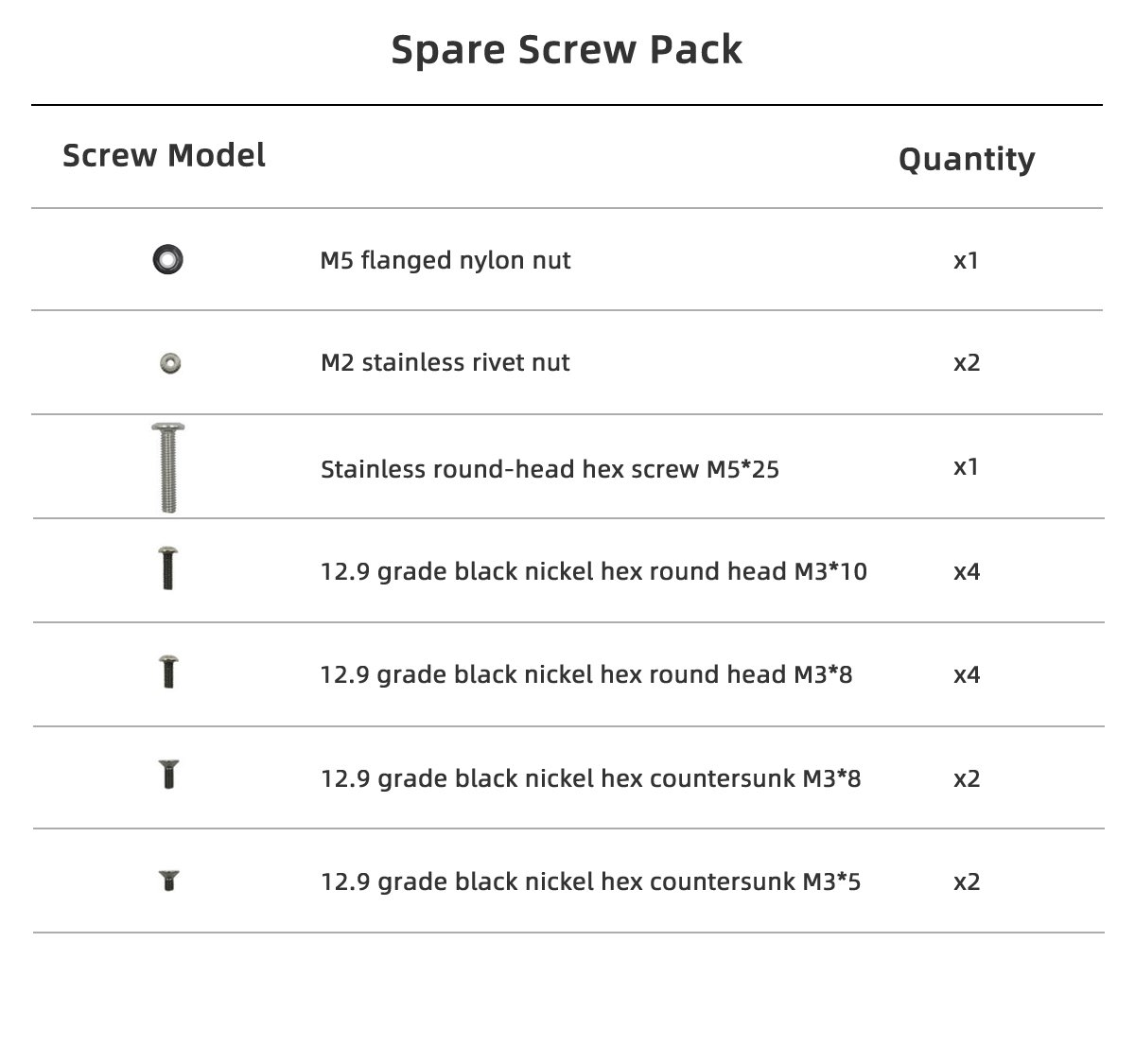 1 x Spare screw pack