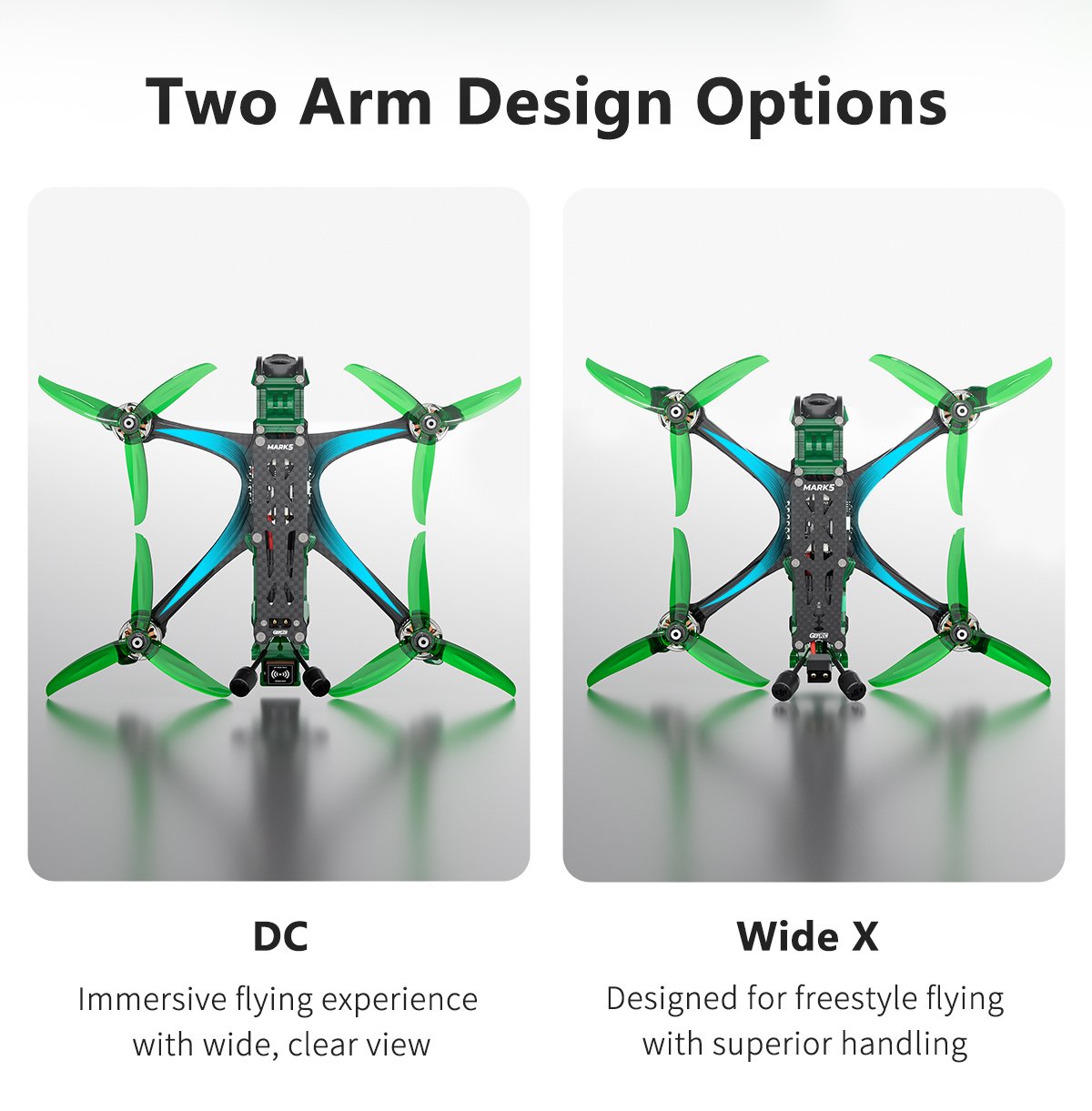 2. DC and wide-X frame options for different flying needs.