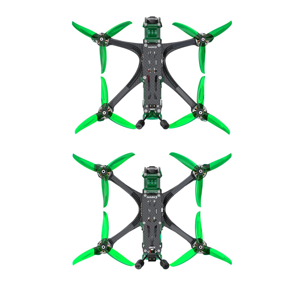 The MARK5 O4 Pro features a newly designed aluminum camera mount and molded silicone damping to minimize vibrations and reduce resonance for the O4 Pro camera.