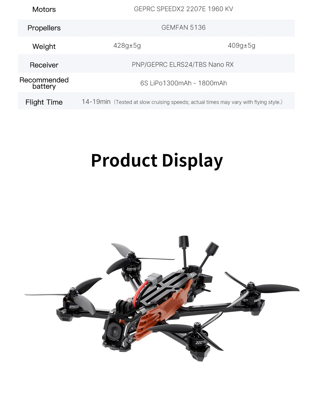 5-inch Motor: GEPRC SPEEDX2 2207E 1960 KV