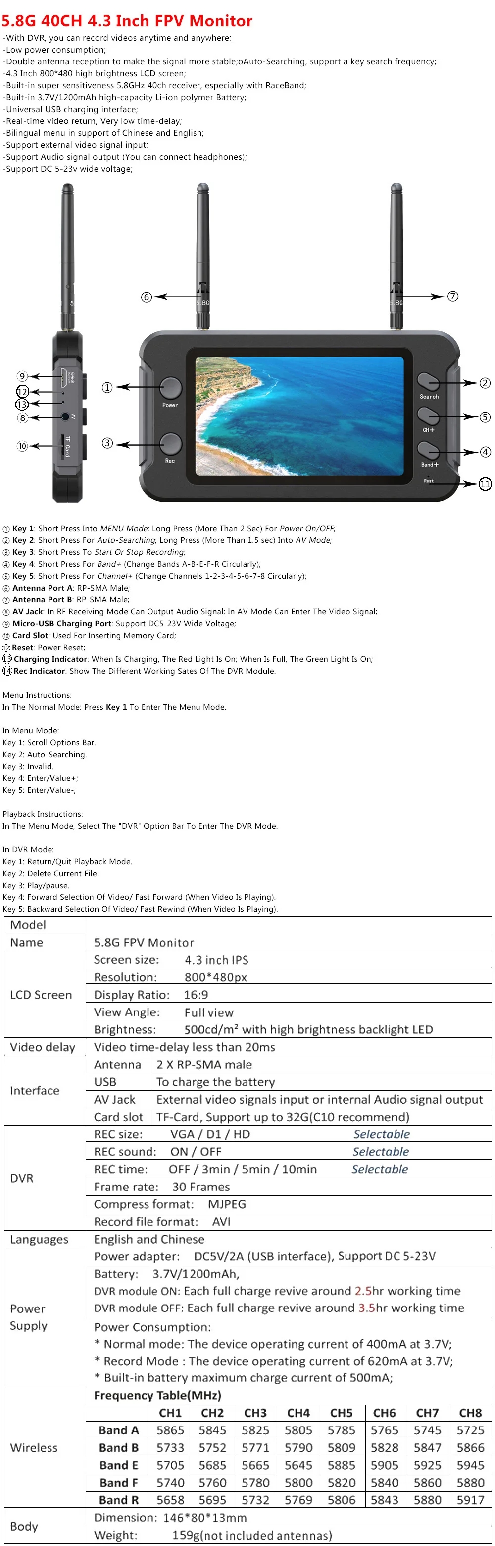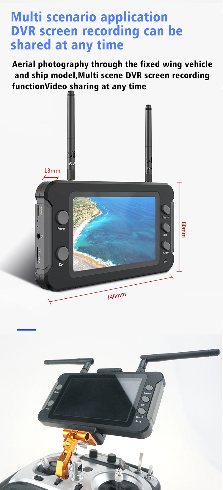 Built-in super sensitive 5.8G 40 channel receiver