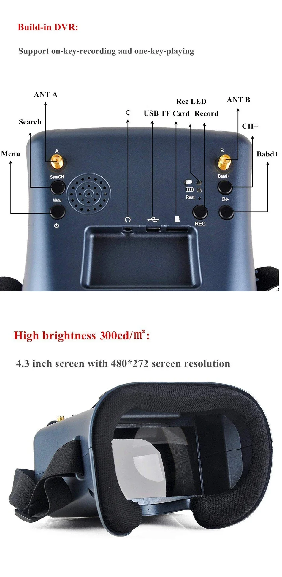 5.8G FPV Goggles LS-008D 4.3 Inch 40CH Support DVR Dual Antenna Built-in Battery 480*272 LS008D Helmet For RC Racing Drone
