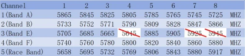 Note: 5645/5925/5945(E4/E7/E8) is an invalid frequency.