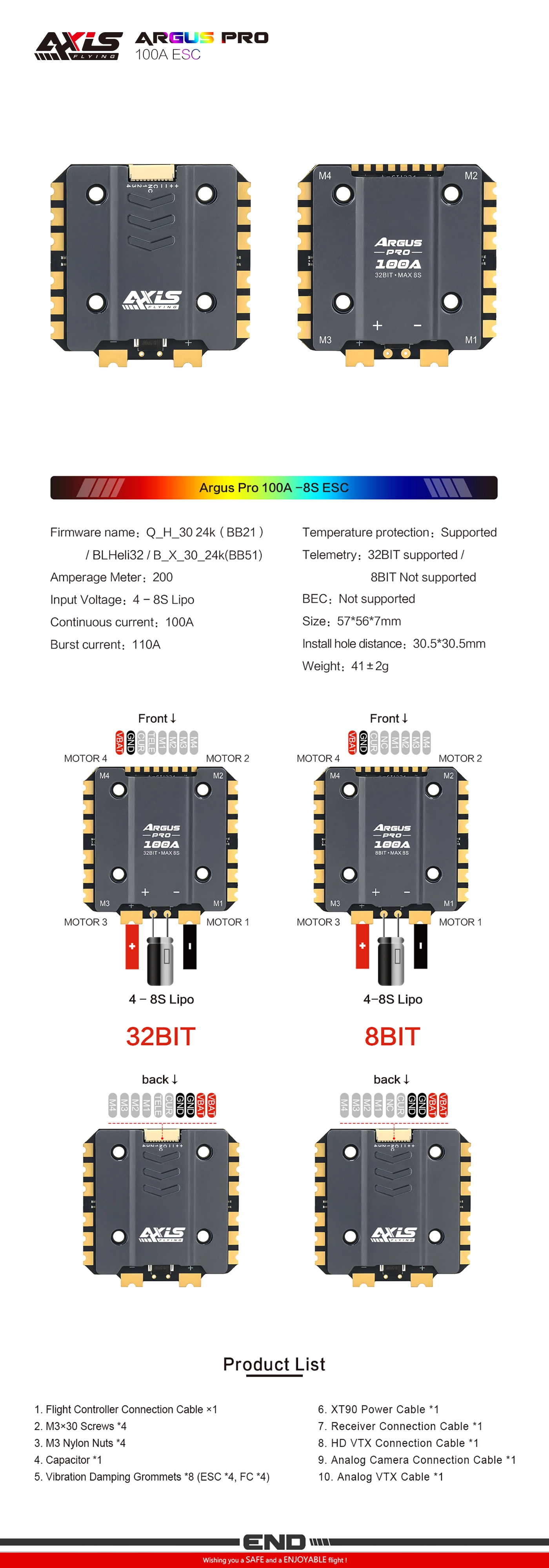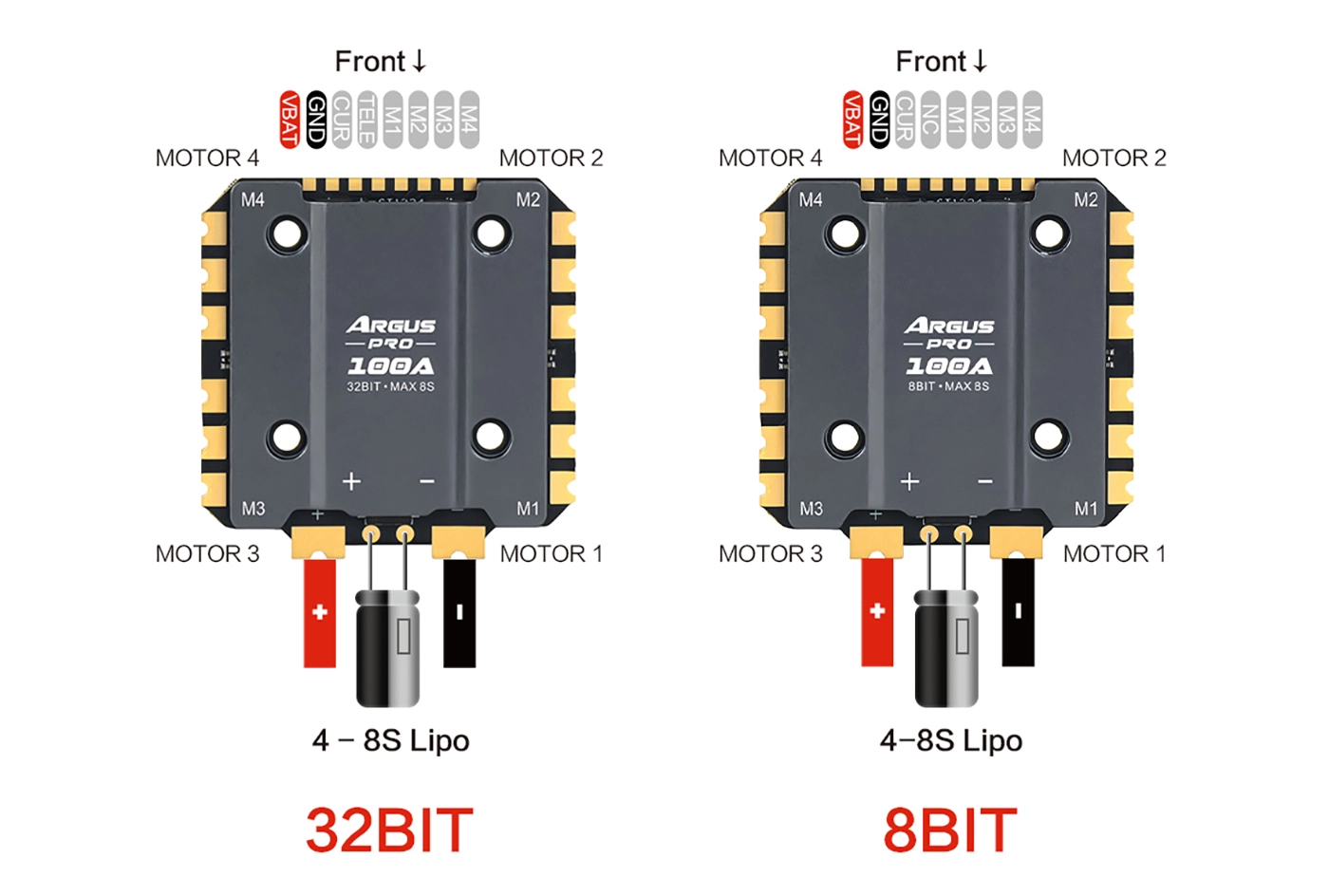 The Axisflying Argus Pro 100A 8bit 32bit 8S ESC delivers high performance and reliability for demanding applications. Choose between advanced 8bit or 32bit versions, each supporting up to 100A for optimal control and efficiency in your setup.