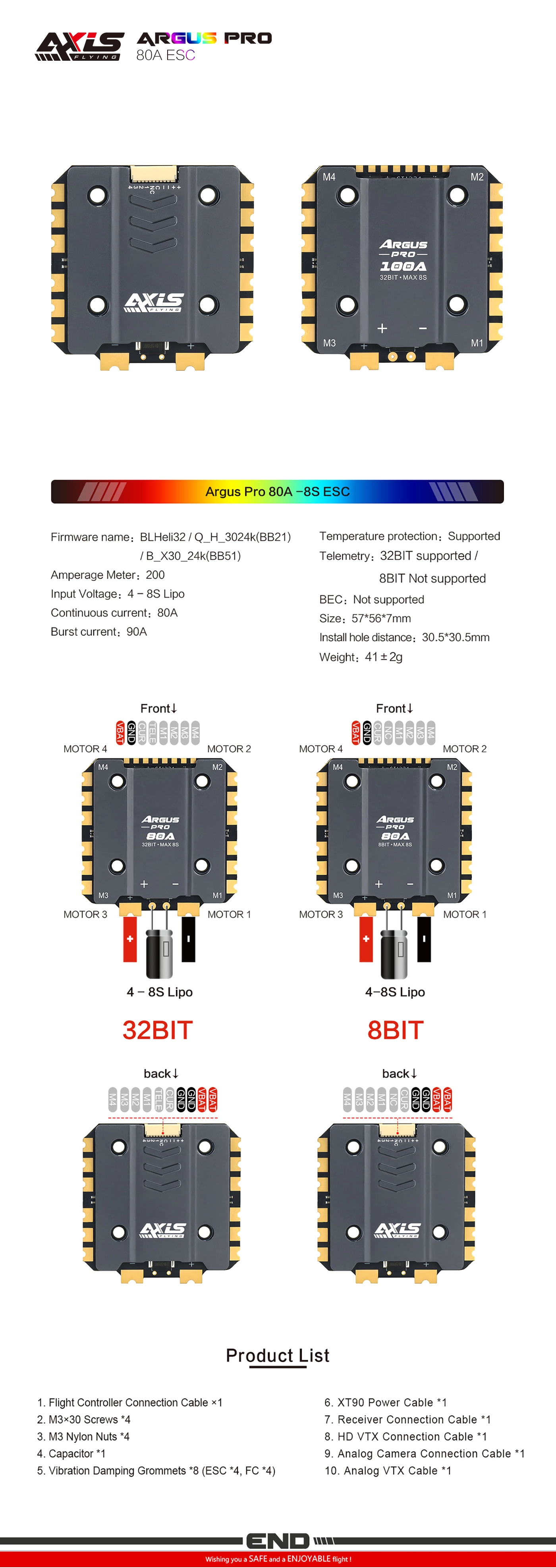 Axisflying Argus Pro 80A 8bit 32bit 8S ESC