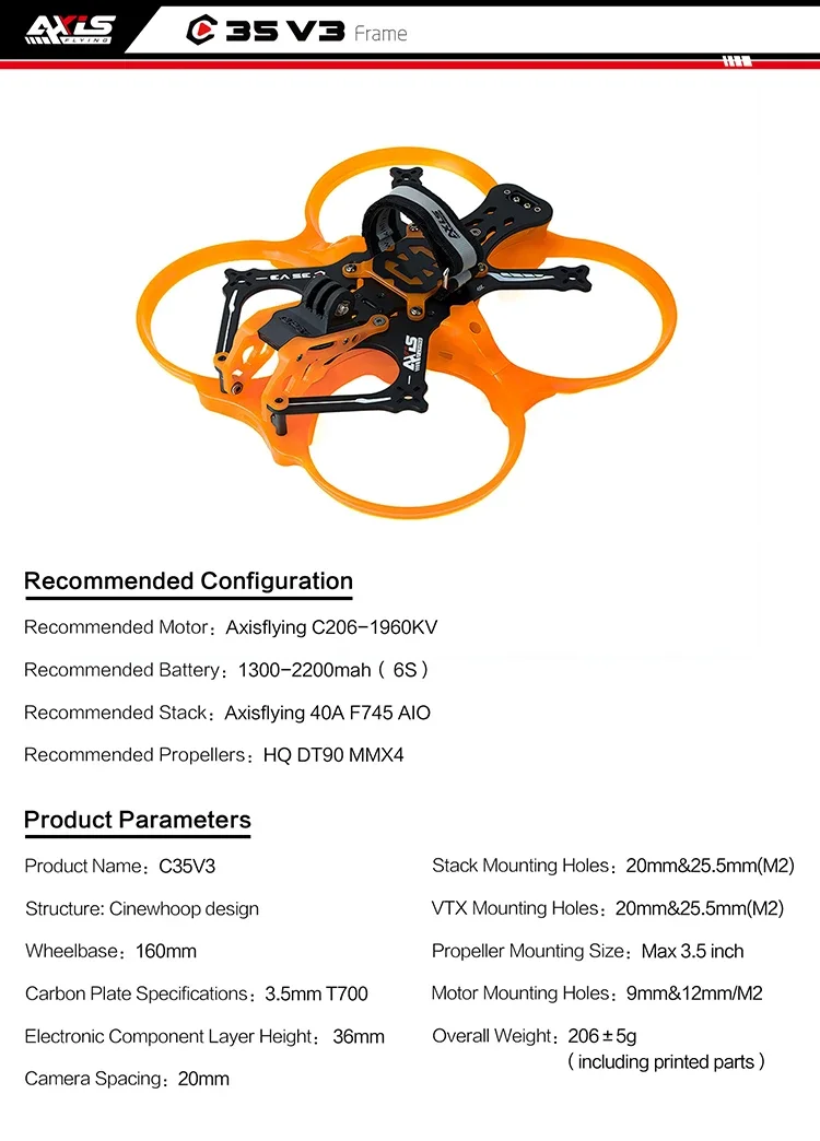AxisFlying Cineon C35 V3 3.5Inch FPV Drone Frame Cinewhoop For Cinematic Freestyle / DJI O4/O4 PRO