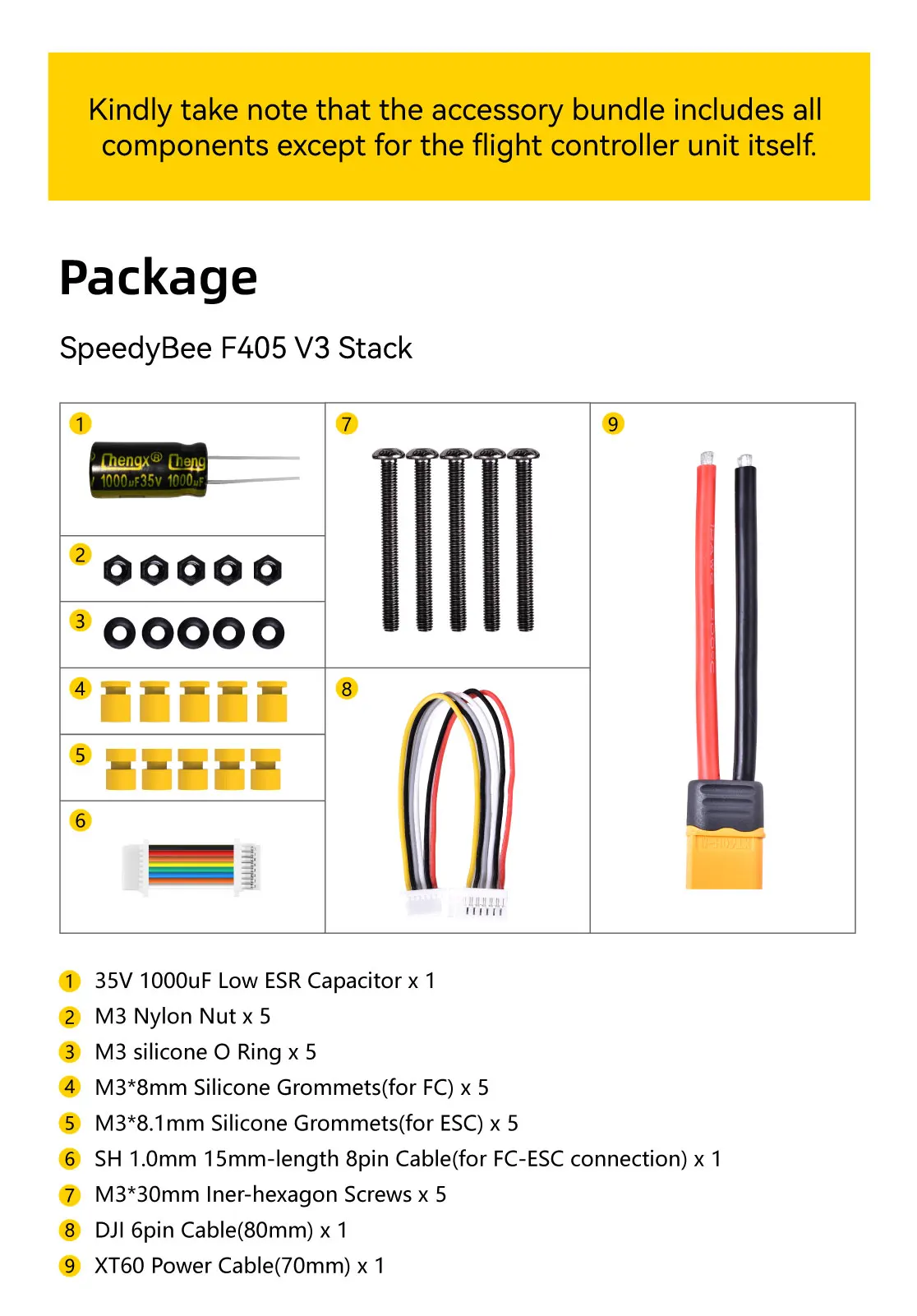 Complete Set of Components for the SpeedyBee F405 V3/F7 V3/F7 Mini Stack
