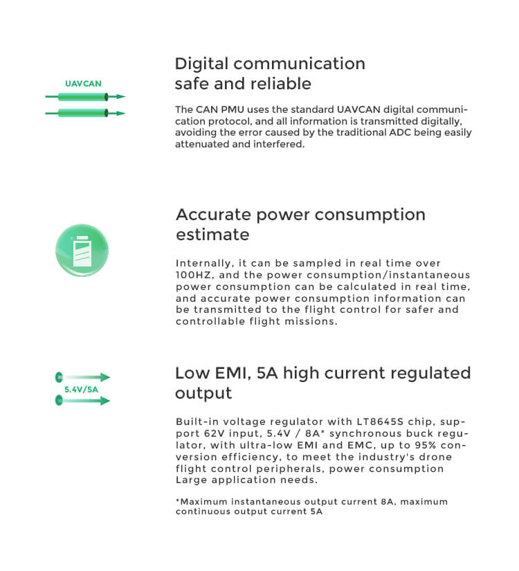 CUAV CAN PMU Power Module Features:
