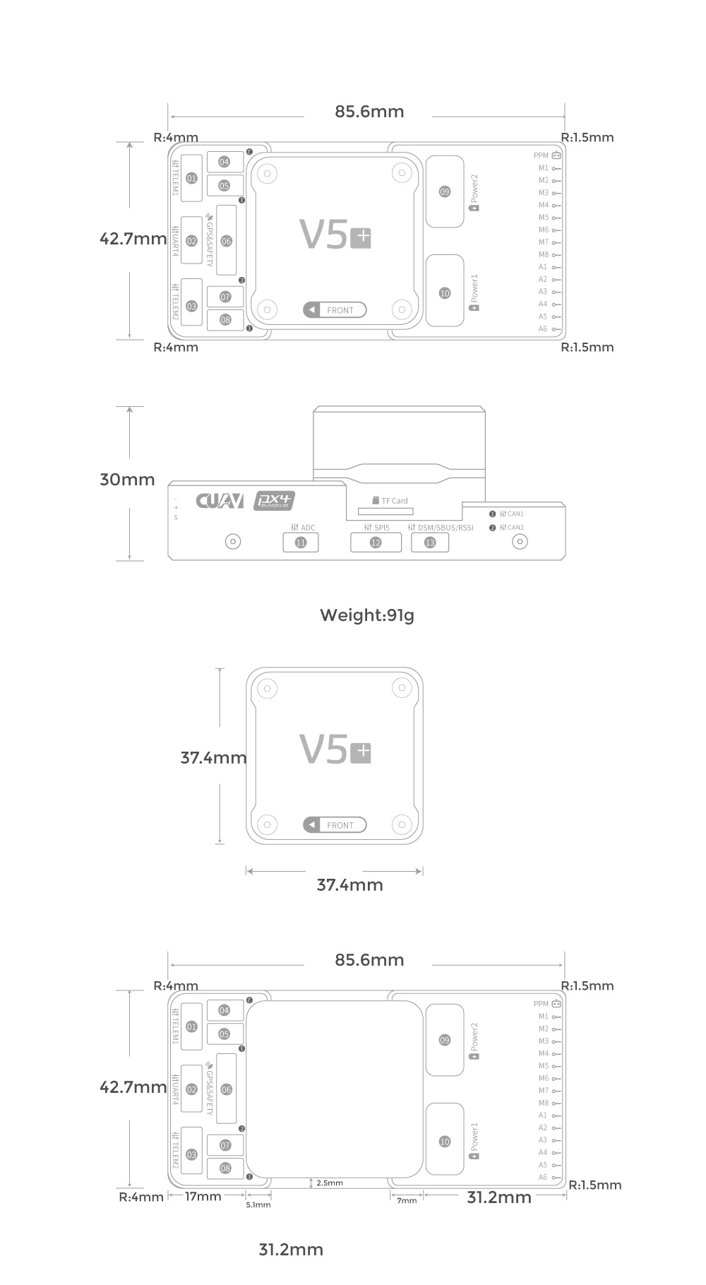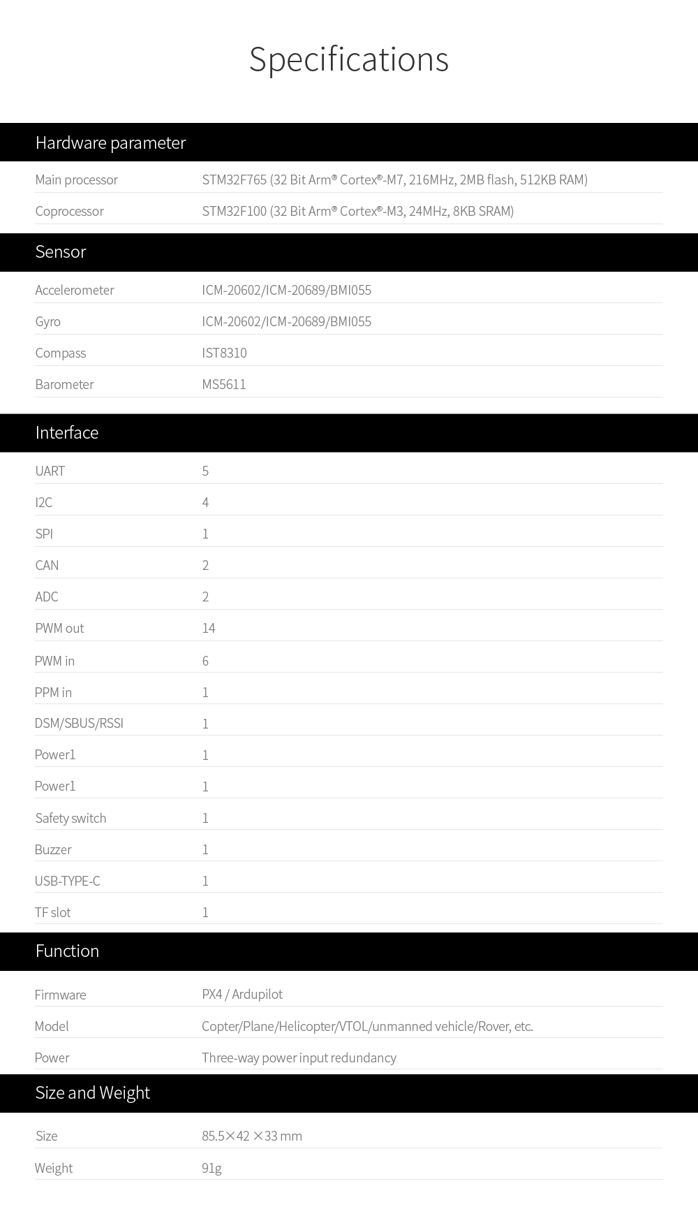 • FMUv5 hardware standard, more advanced and stable than FMUv3