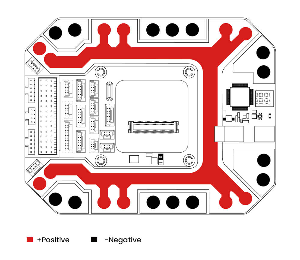 5–Thickened tinned PCB to reduce internal resistance
