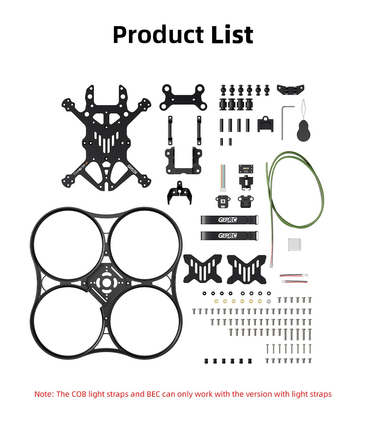 The GEP-CL30 V2 O3 frame retains the lightweight design of its predecessor, now upgraded with an all-in-one protective frame and a built-in COB LED strip for vibrant night flying.