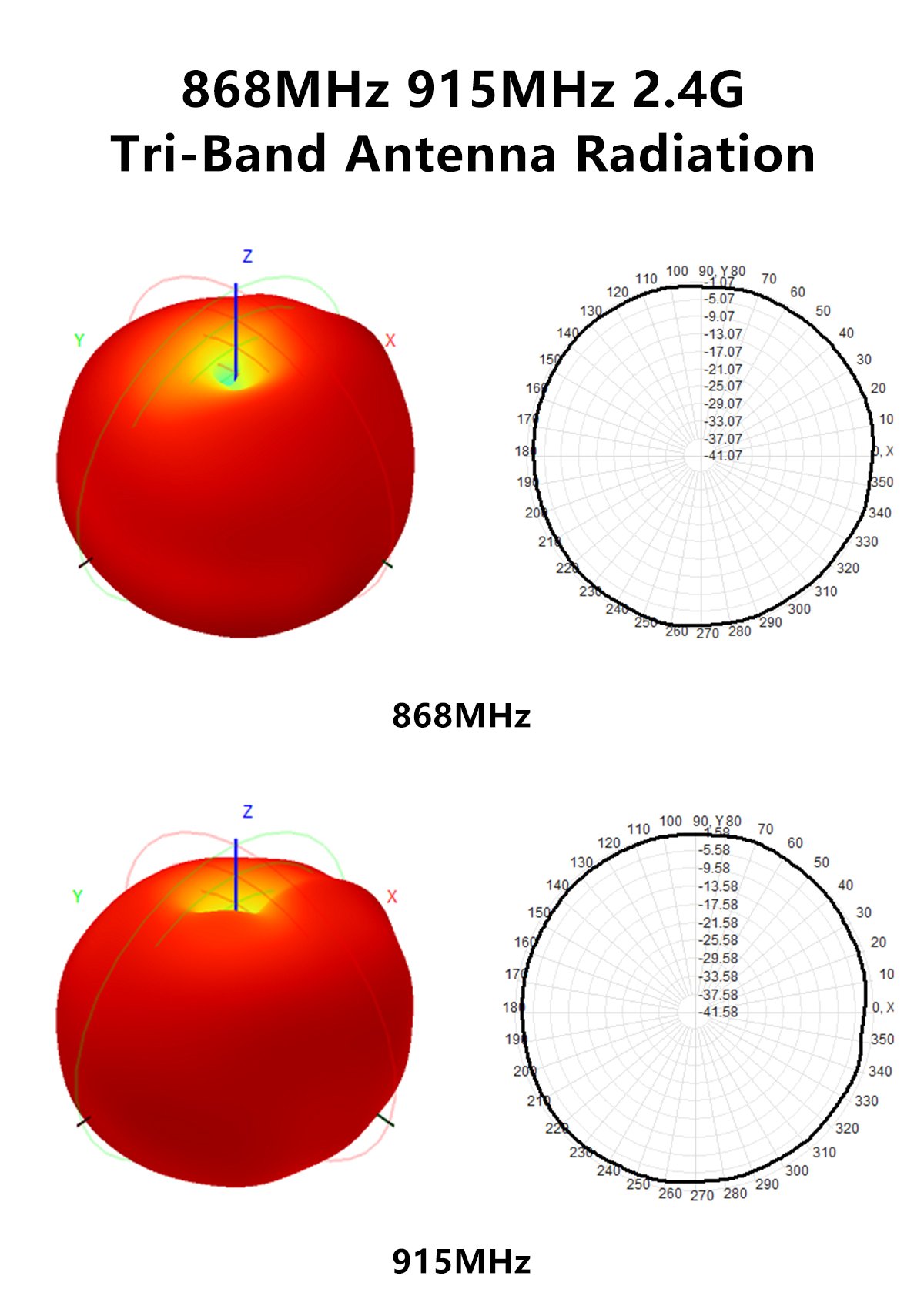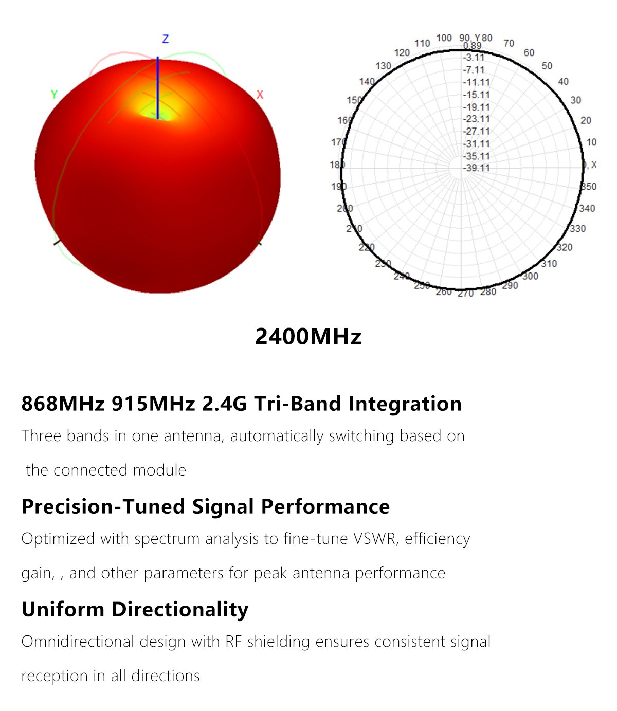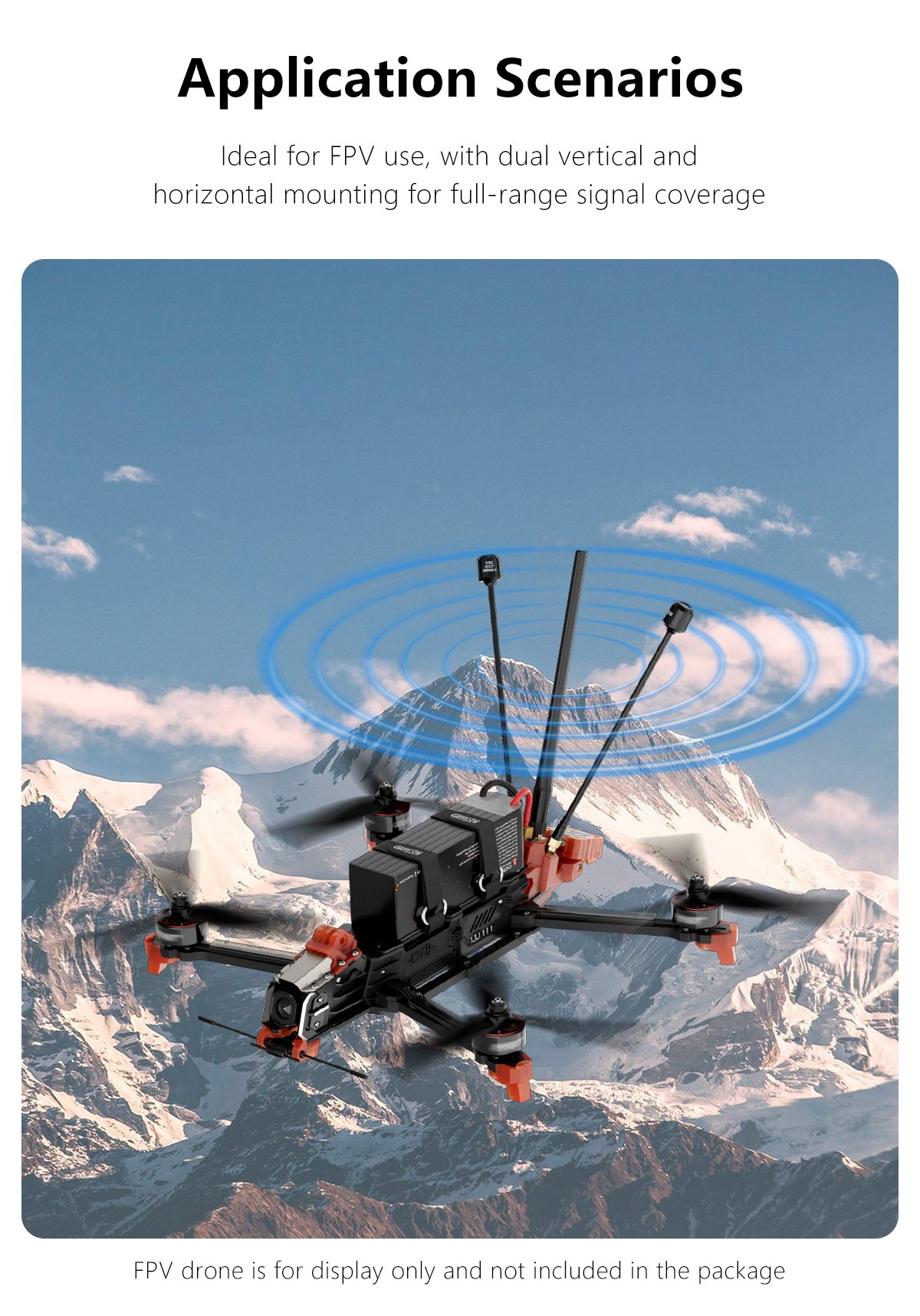 The GEPRC 868MHz/915MHz/2.4GHz tri-band stick antenna features a PCB design with linear polarization for omnidirectional signal reception. It maintains strong connectivity during dynamic flight maneuvers. With excellent cross-polarization suppression, it performs well in high-interference environments, minimizing signal disruption.