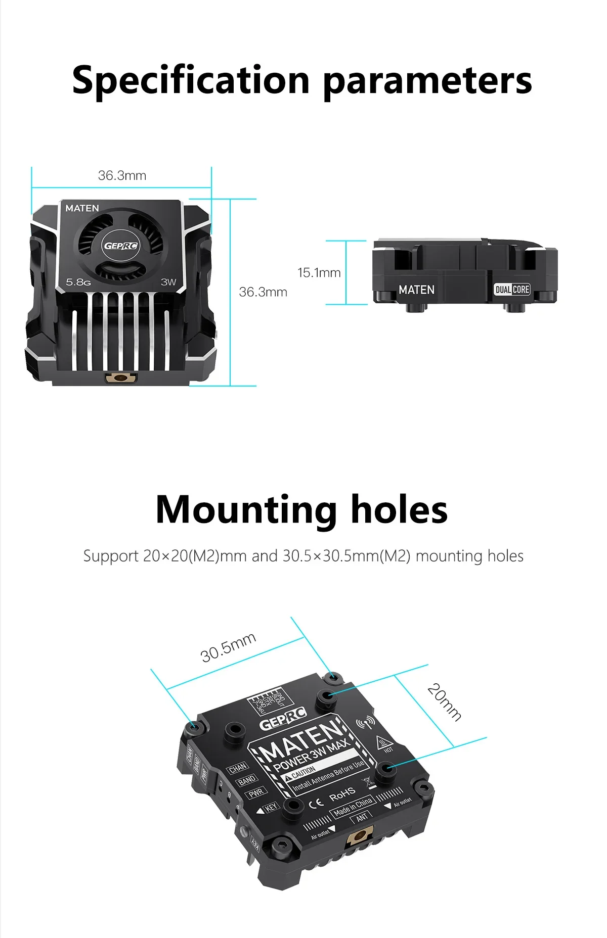 - Model: GEPRC MATEN 5.8G 3W VTX PRO