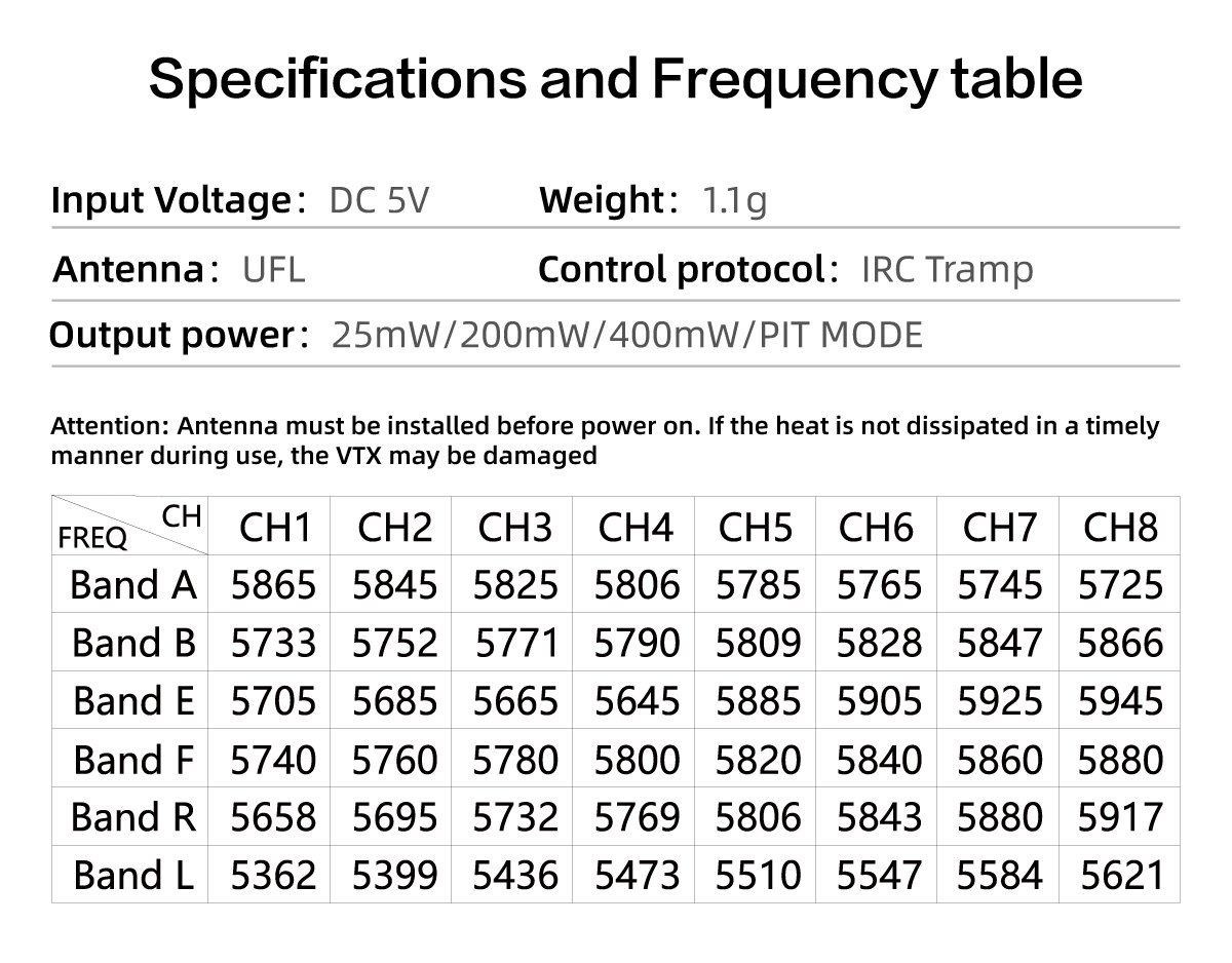 The 400mW power generates little heat and the signal is stable, suitable for medium and short distance flights.
