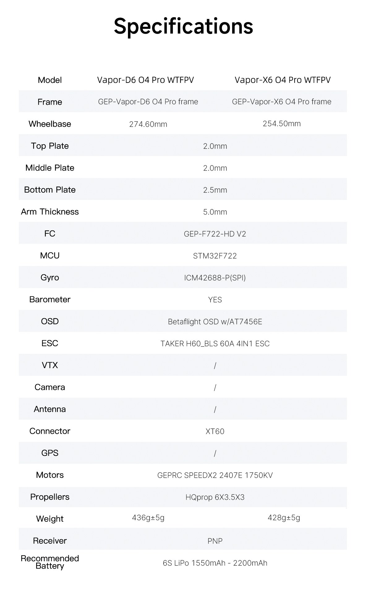 • Model: Vapor-X6 O4 Pro WTFPV