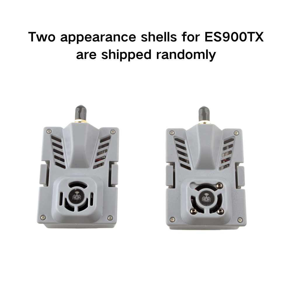 ES900TX and ES900RX modules are a set of Long Range 915MHz/868MHz(optional) wireless transmission equipment developed and designed based on the open source software ExpressLRS. This set of modules is characterized by ultra-long range, stable operation and low latency. The module is compatible with most Opentx remote controllers, especially suitable for Radiomaster TX16S and Jumper T12 T16 T18 series remote controllers, basically plug and play. We have specially customized the heat sink for the transmitter module, and also reserve the installation position of the 2006 fan which can help the transmitter module to operate stably under high power conditions.