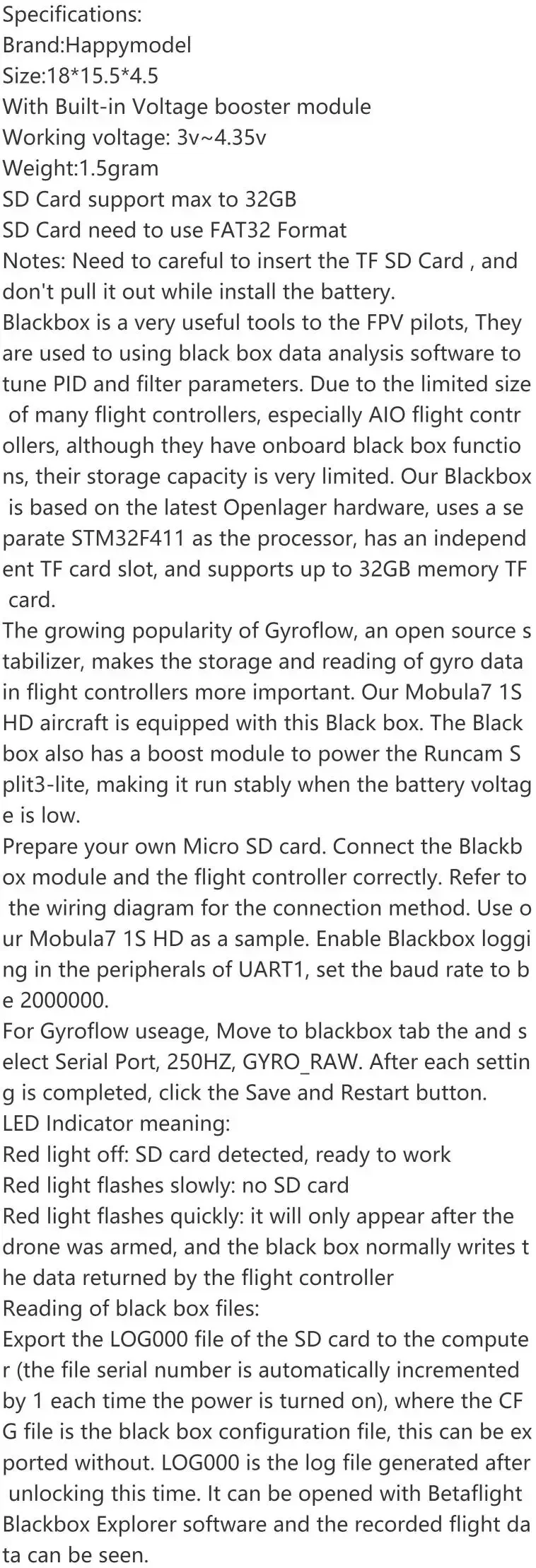 HappyModel Mobula7 1S HD FPV Tinywhoop Drone Replacement Openlager Blackbox Voltage Booster Module for Betaflight Gyroflow