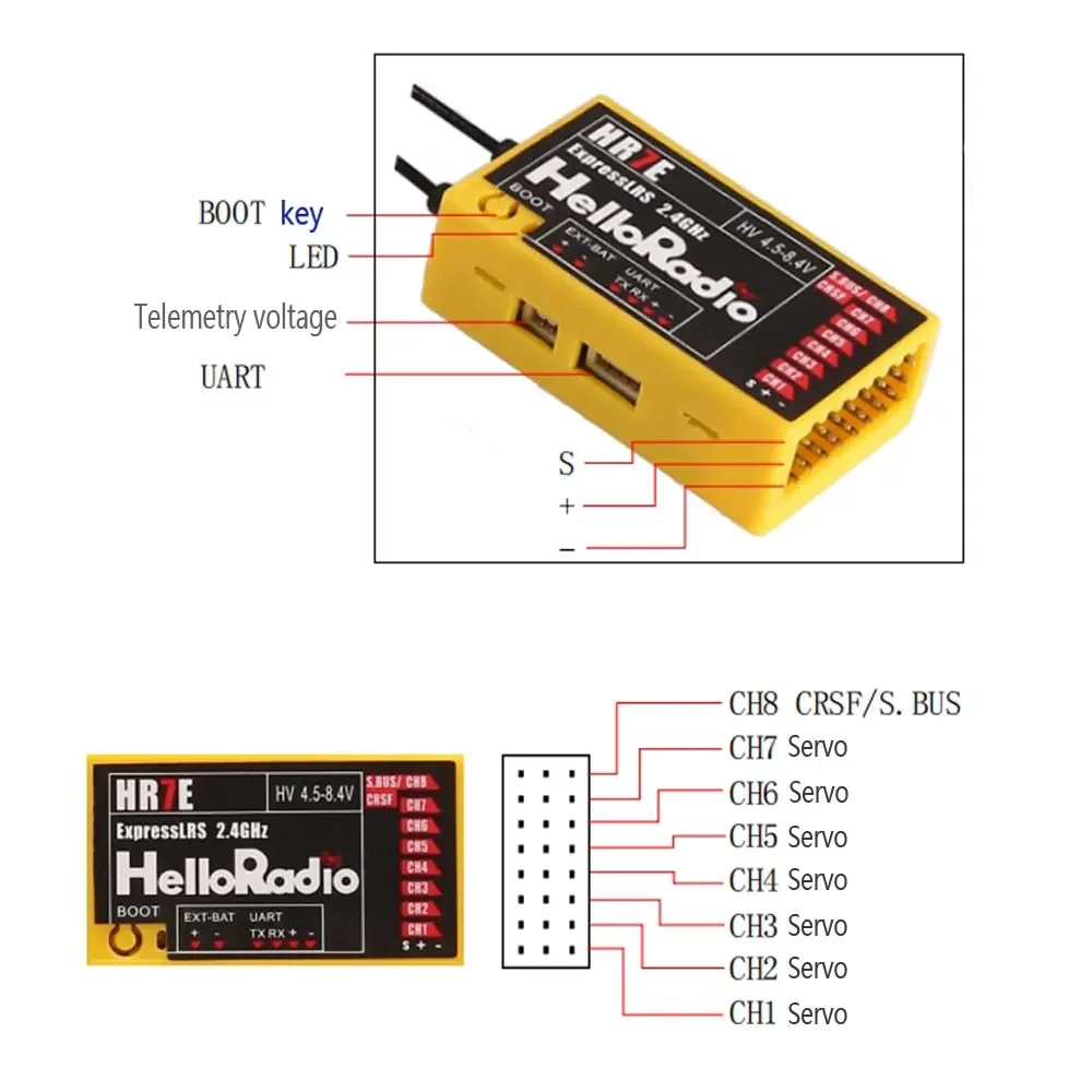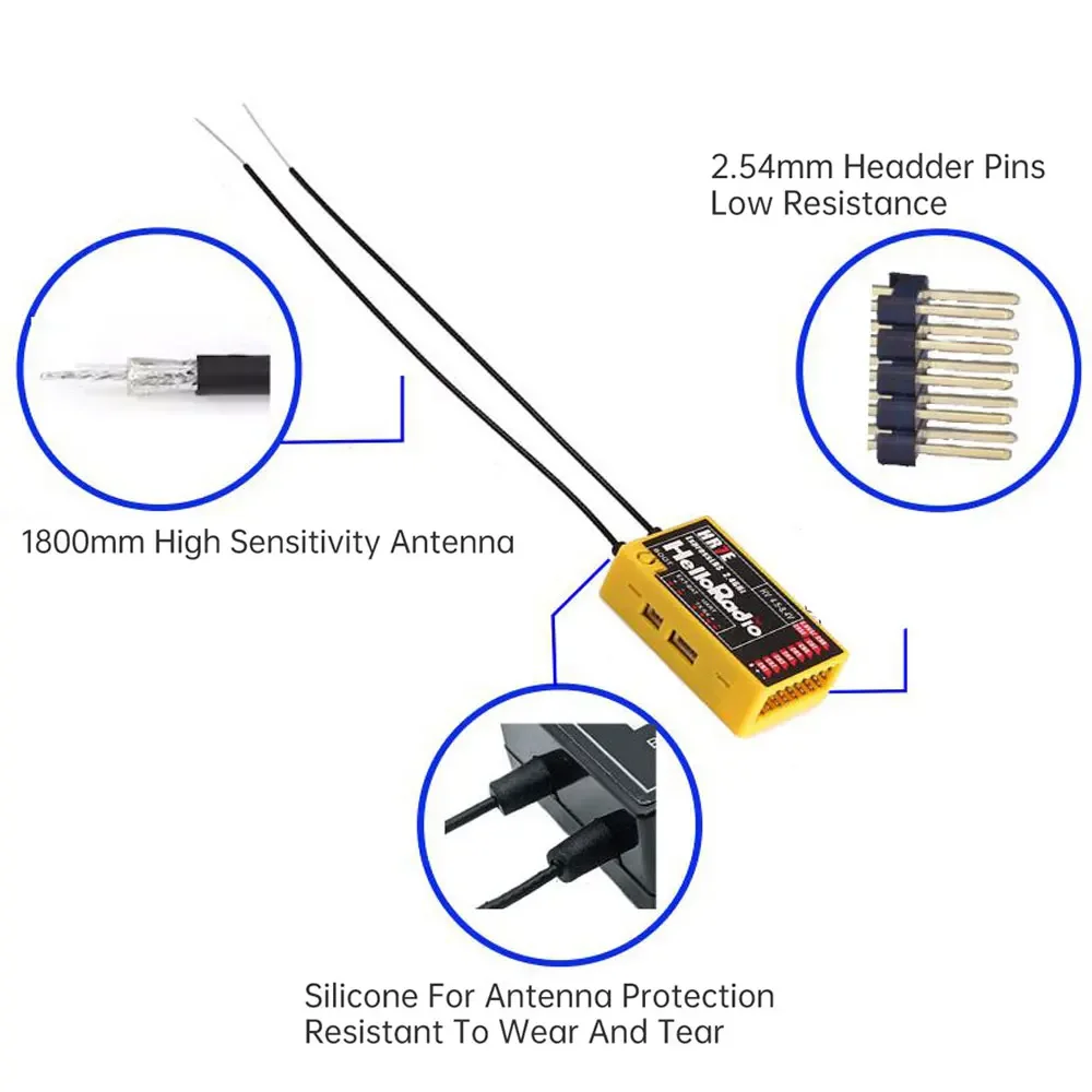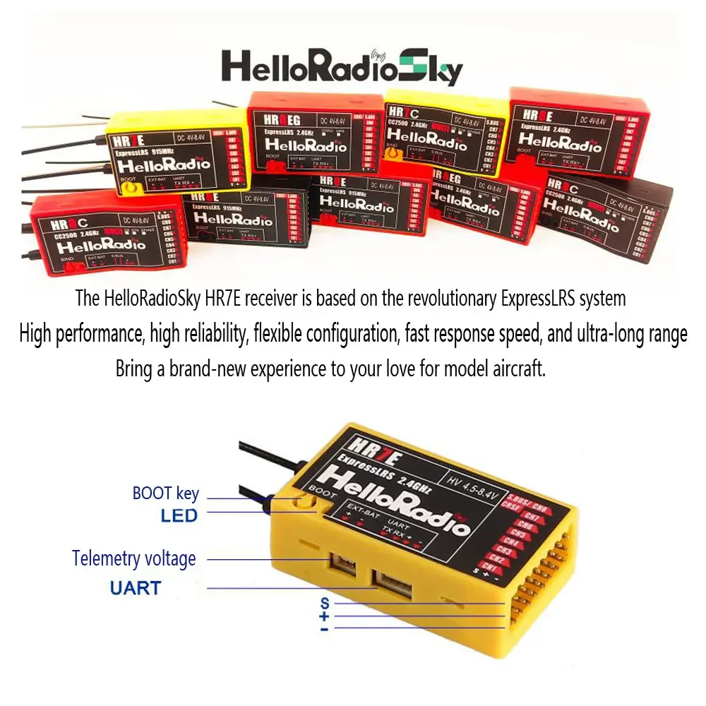 The HelloRadioSky HR7E receiver is specially designed for fixed-wing users.