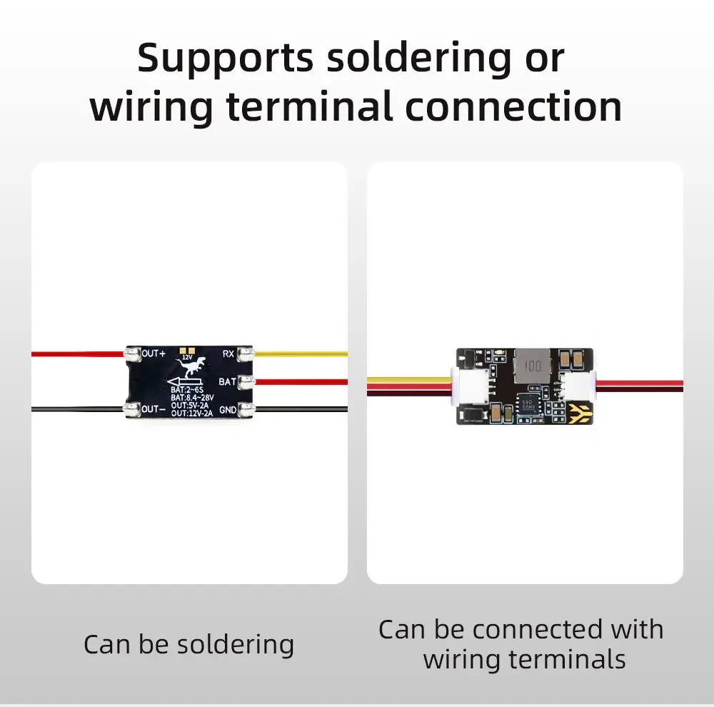 HGLRC 5-12V BEC Step-down Module 5V/12V Output / 8.4V-28V Input Supports Welding or Wiring Terminal Connection for RC FPV Drone