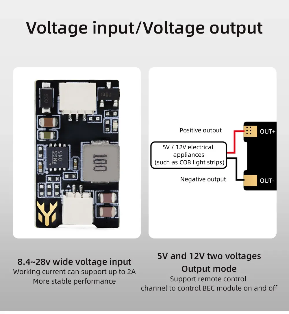 HGLRC 5-12V BEC: A remote-controlled BEC step-down module that supports two-mode voltage switching