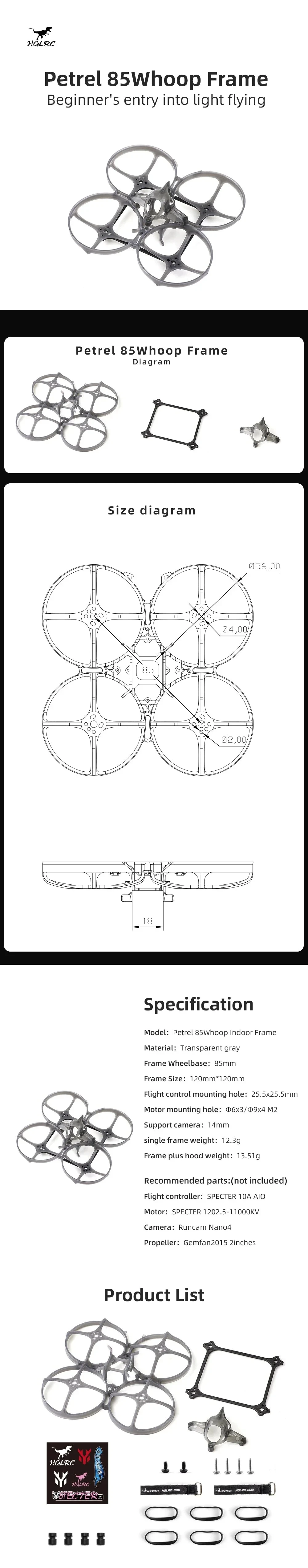 HGLRC Petrel 85Whoop Ultra-light Indoor Frame for FPV Racing Drone