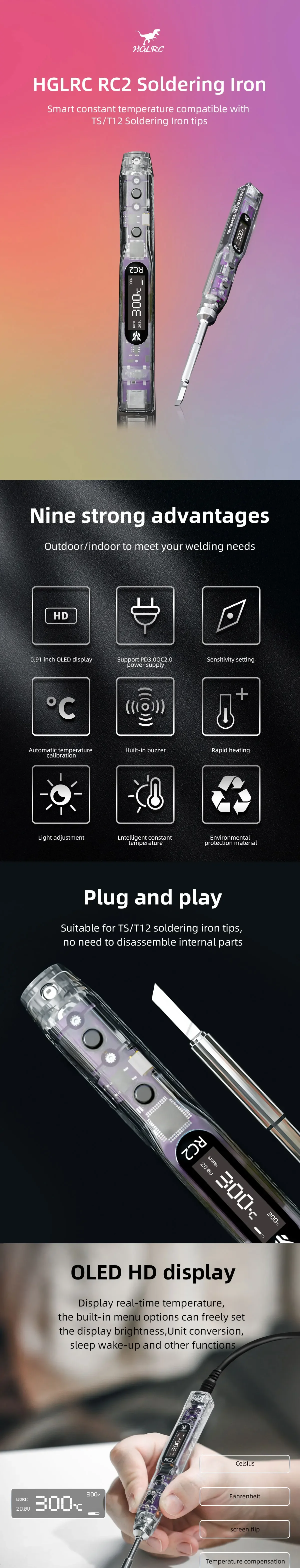-Suitable for long and short soldering iron tips, the max temperature is 450°C/842°F.