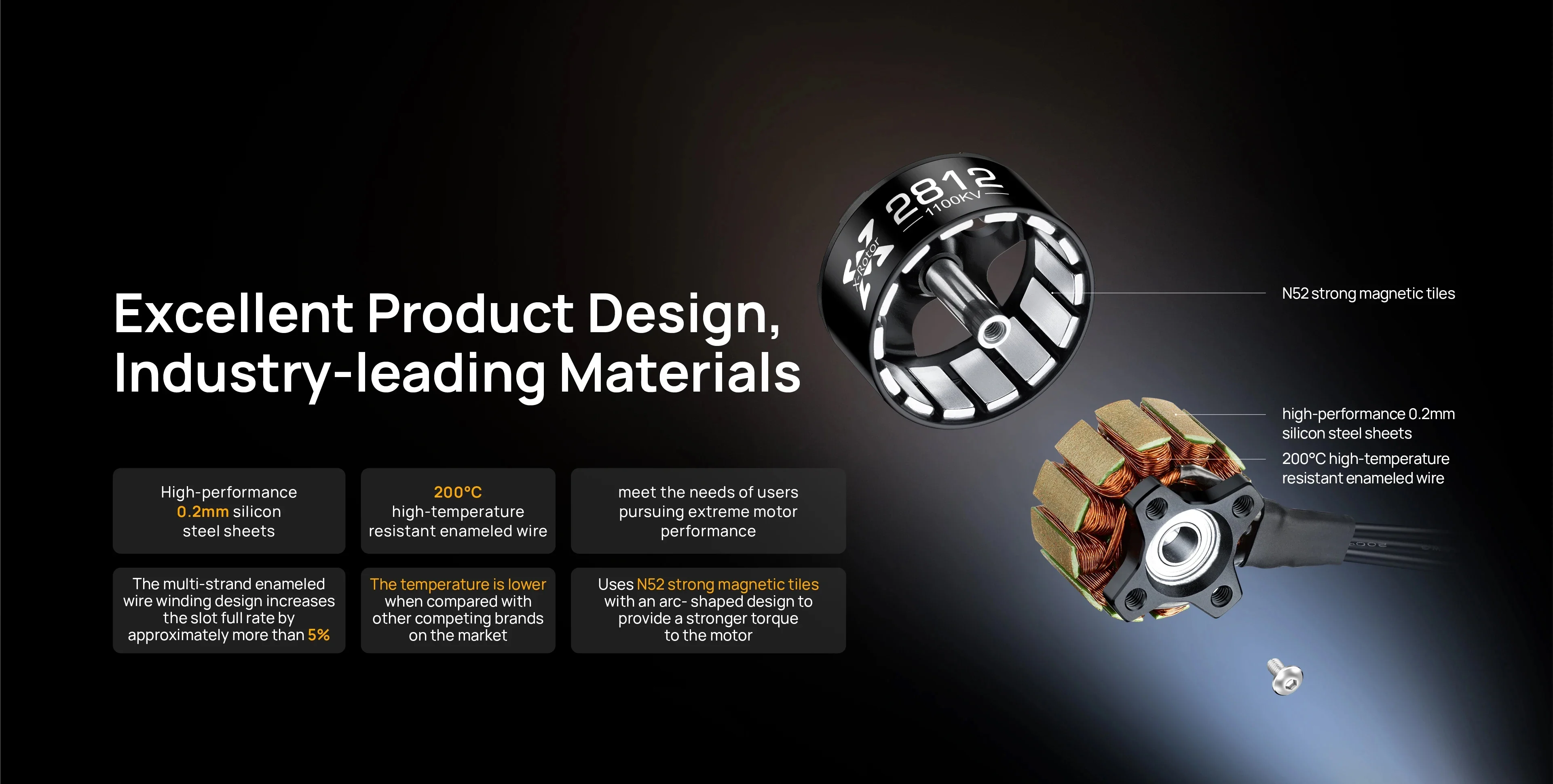 220℃ High temperature Resistant, H Class insulation |