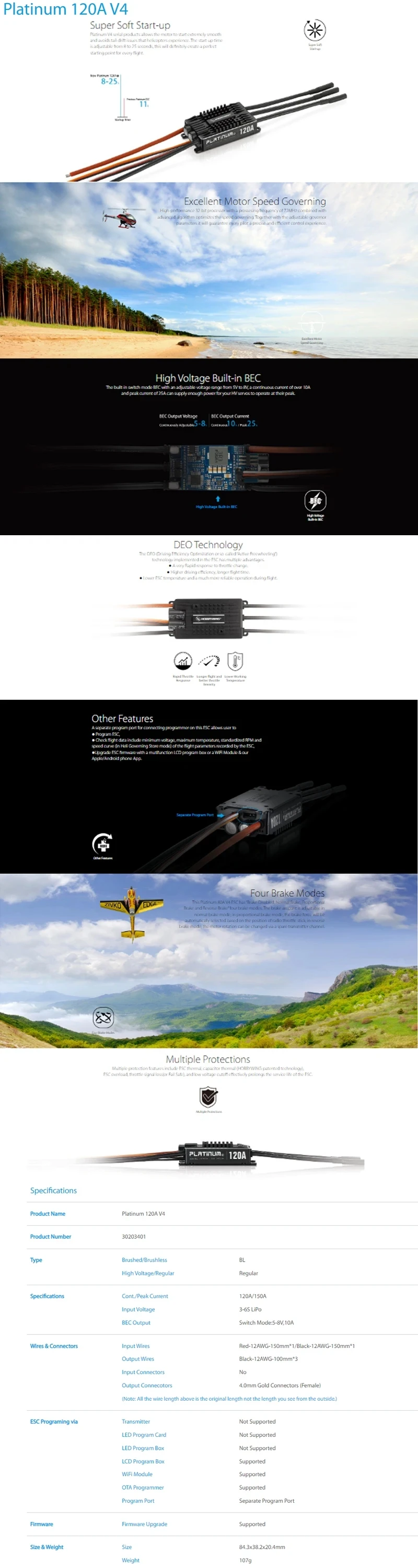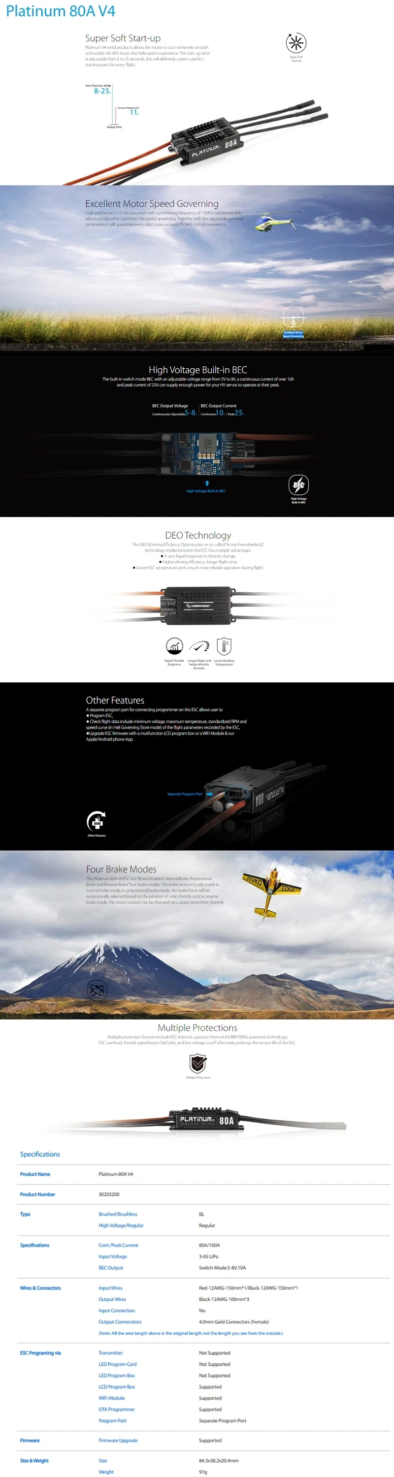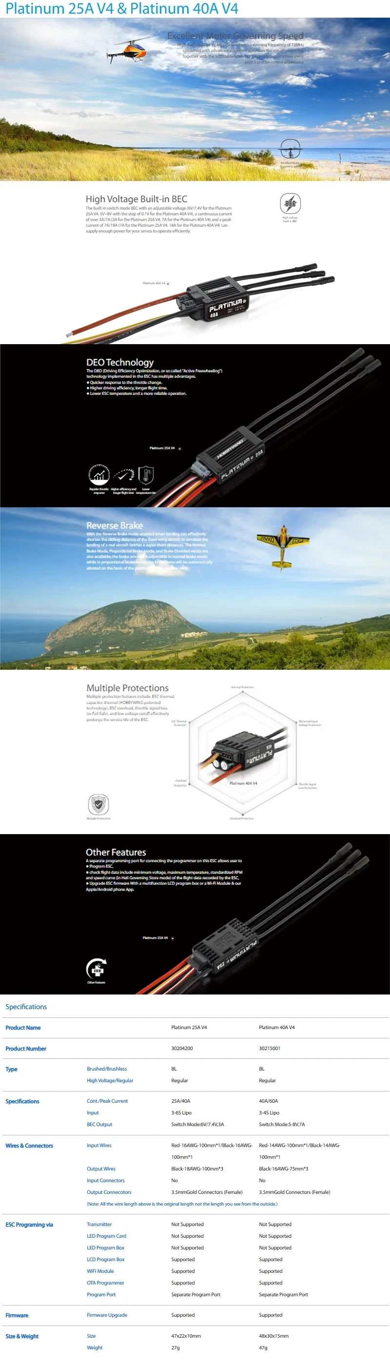 ESC Programing Via: LCD Program Box, WiFi Module, OTA Programmer, Separate Program Port;