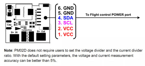 - This PM uses I2C digital signal data output, Compatible with Pixhawk 5X/6X Series.
