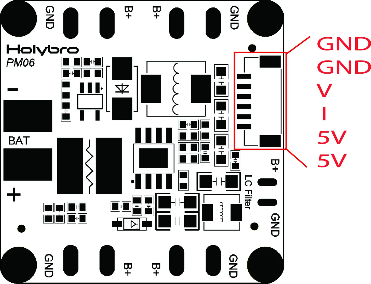 This PM02 Power Module uses analog data output and is not compatible to the Pixhawk 5X & 6X (Requires a digital PM like PM02D).