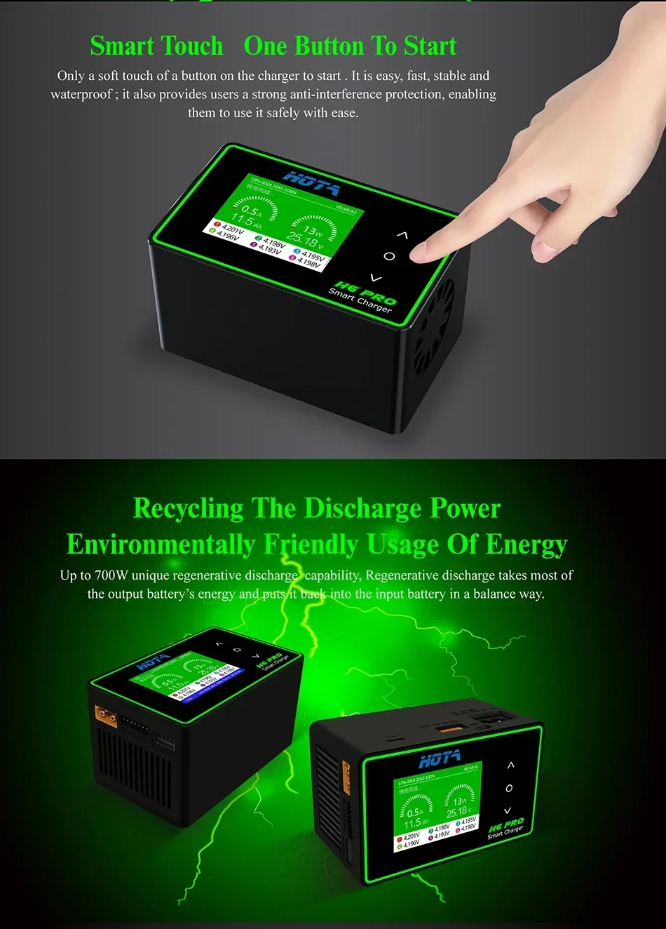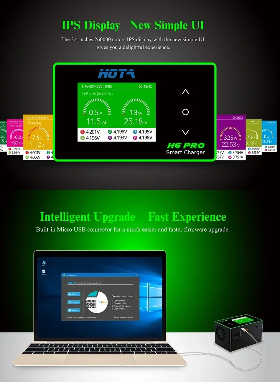 HOTA H6 Pro Duo AC 200W DC 700W 26A Mini Battery Charger 1-6S Lipo NiMh Li-ion Ni-Cd Digital RC Balance Charger Discharger Tools