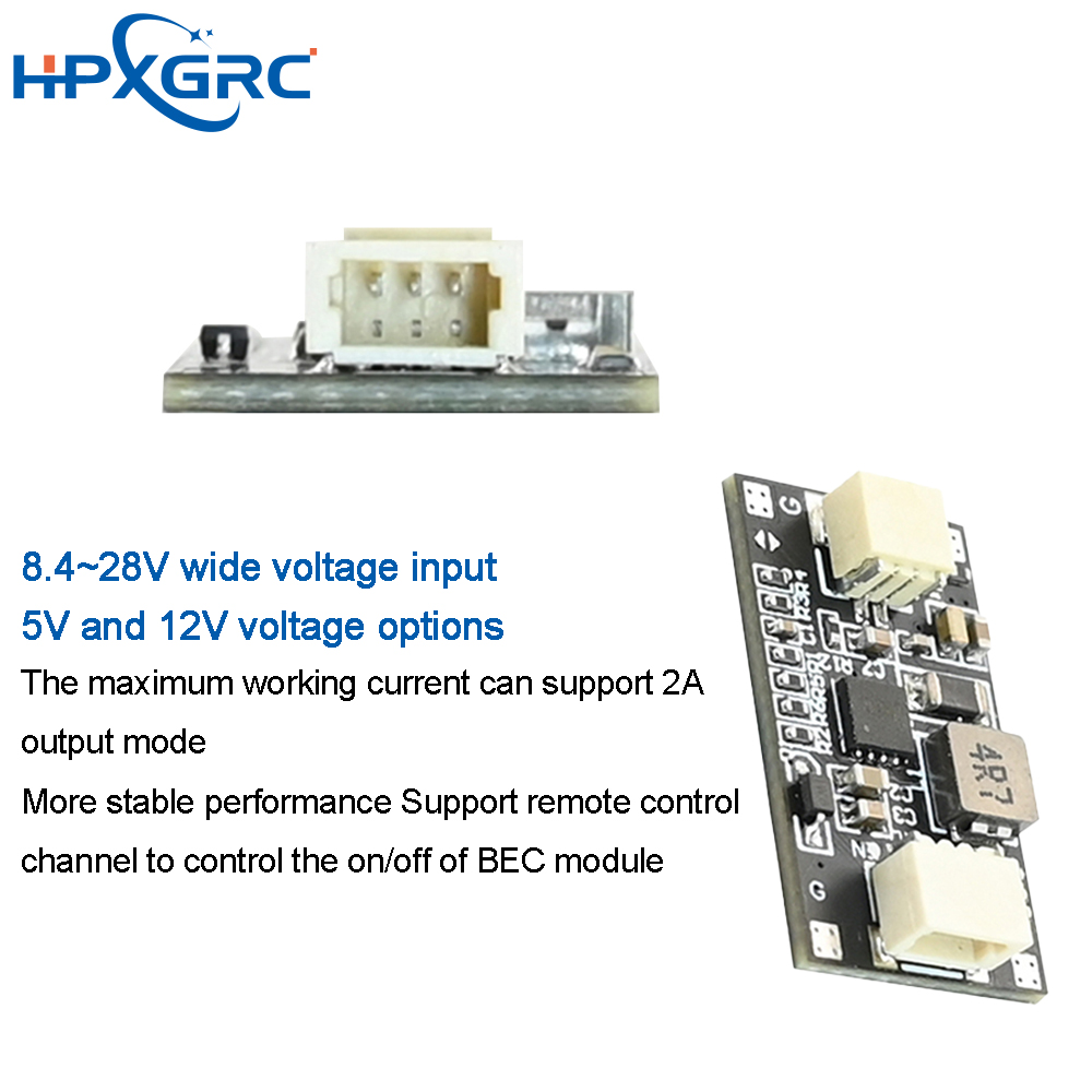 The HPXGRC 5-12V BEC Step-down Module offers reliable 5V/12V output from an 8.4V-28V input range. Designed for flexibility, it supports both welding and wiring terminal connections, ensuring seamless integration into various electronic applications.