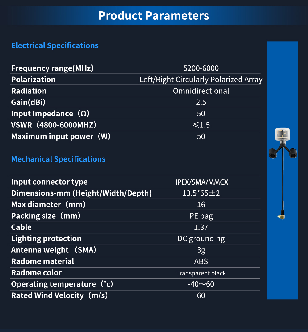 Input Connector Type:IPEX/SMA/MMCX