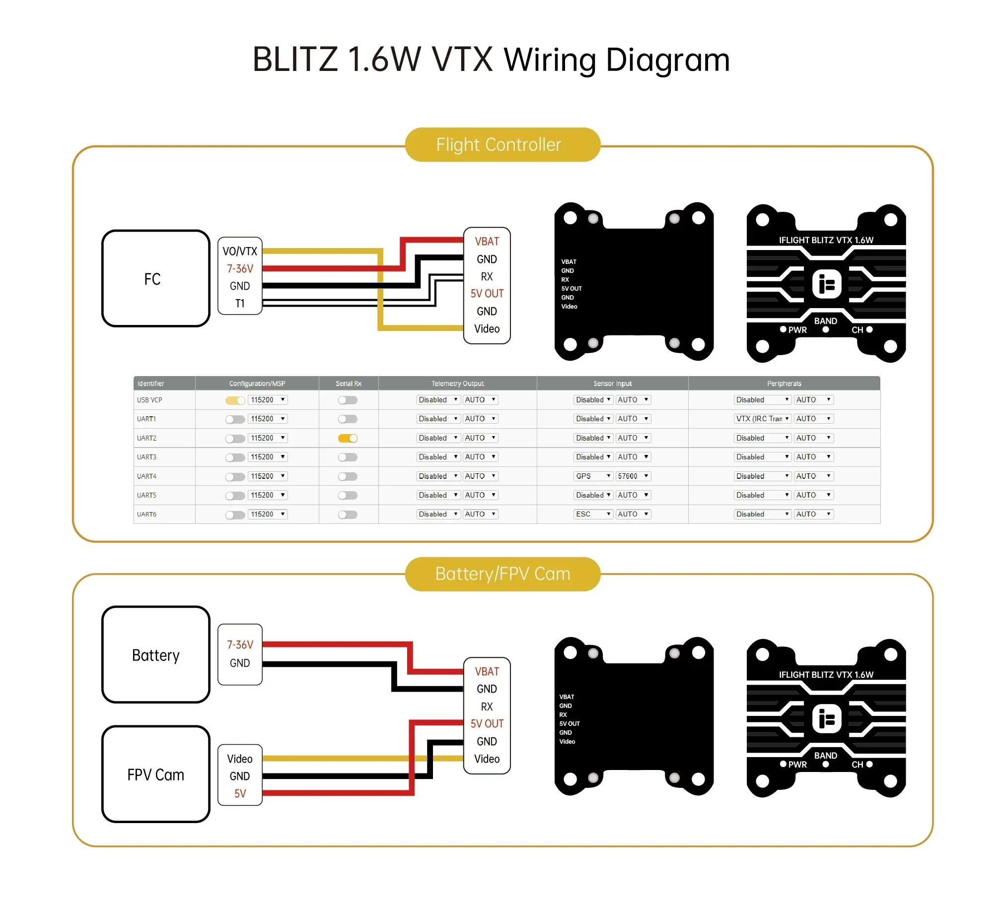 VTX is set to 25mW by default! Power levels above 25mW require a HAM license or have to be approved by local authorities! Please ensure you're flying legal frequencies and use our prepared Betaflight VTX tables according to your region.