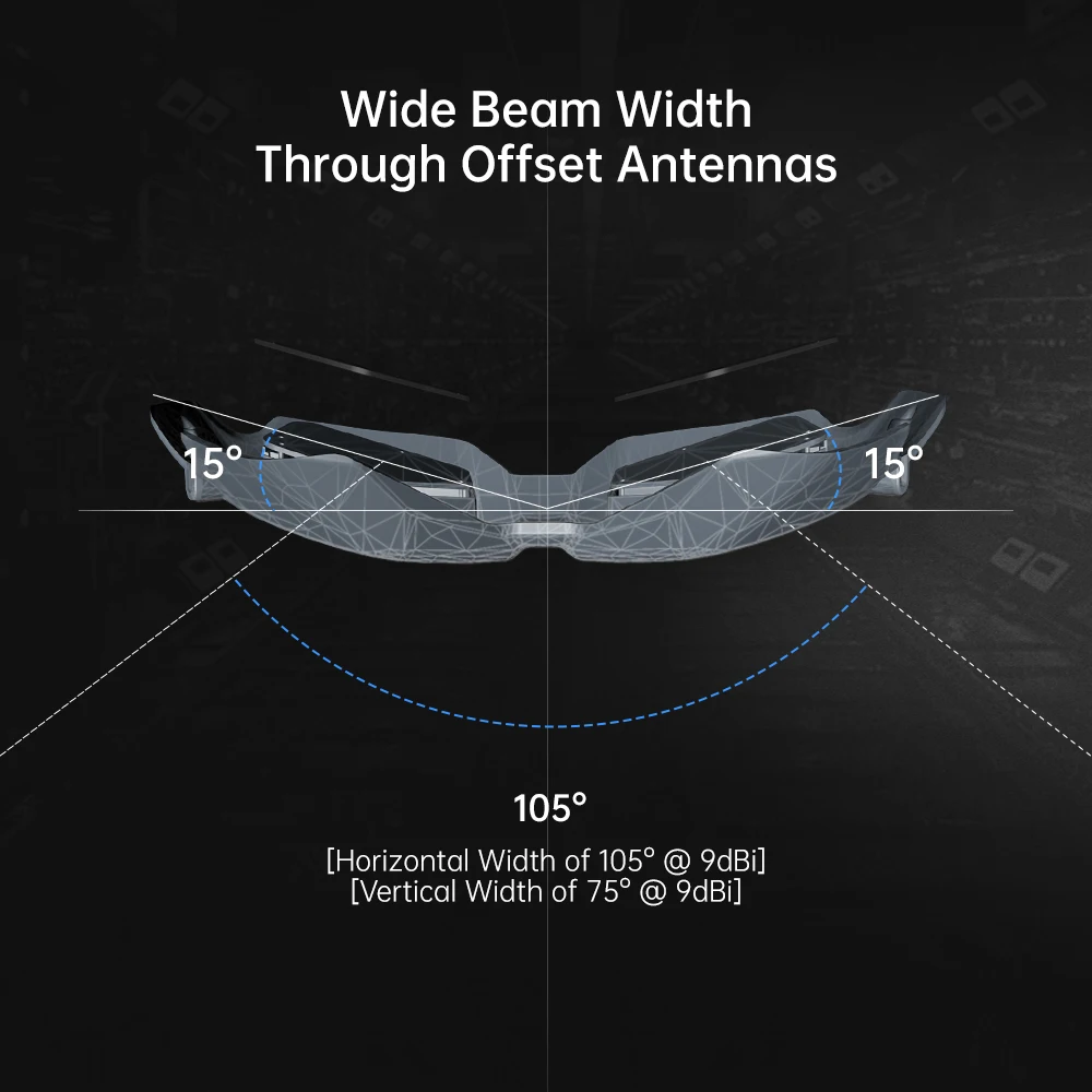 Super wide beam width, horizontal 105 degrees @9dBi, vertical 75 degrees @9dBi