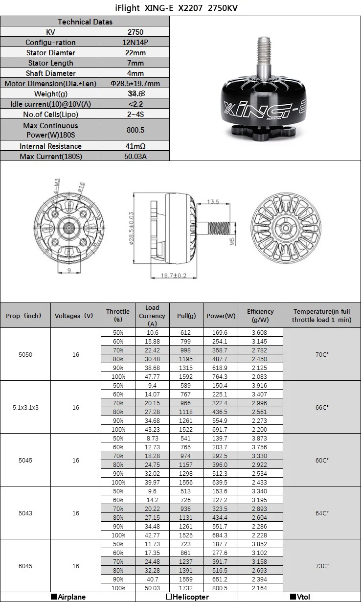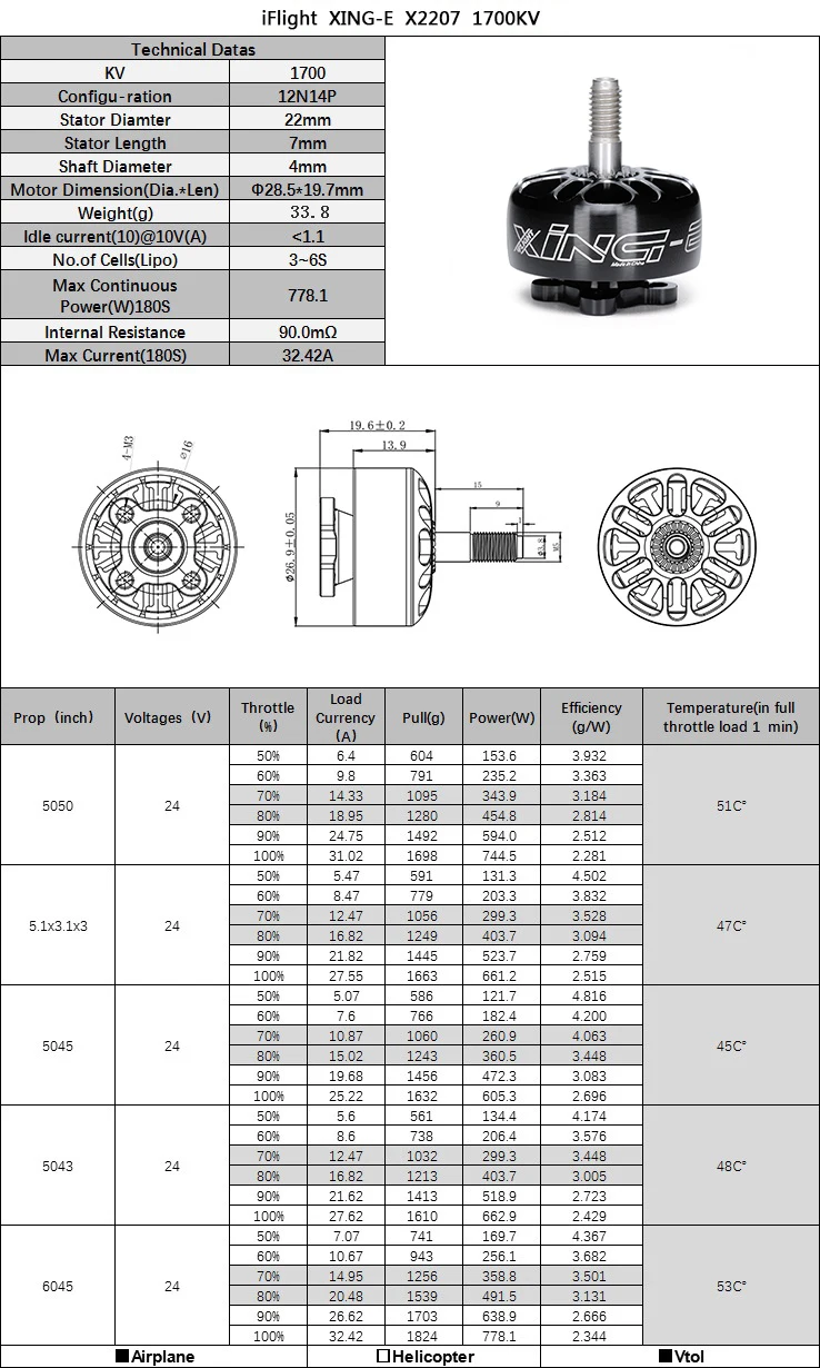 1pcs XING-E 2207 motor