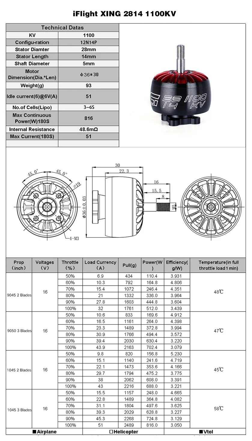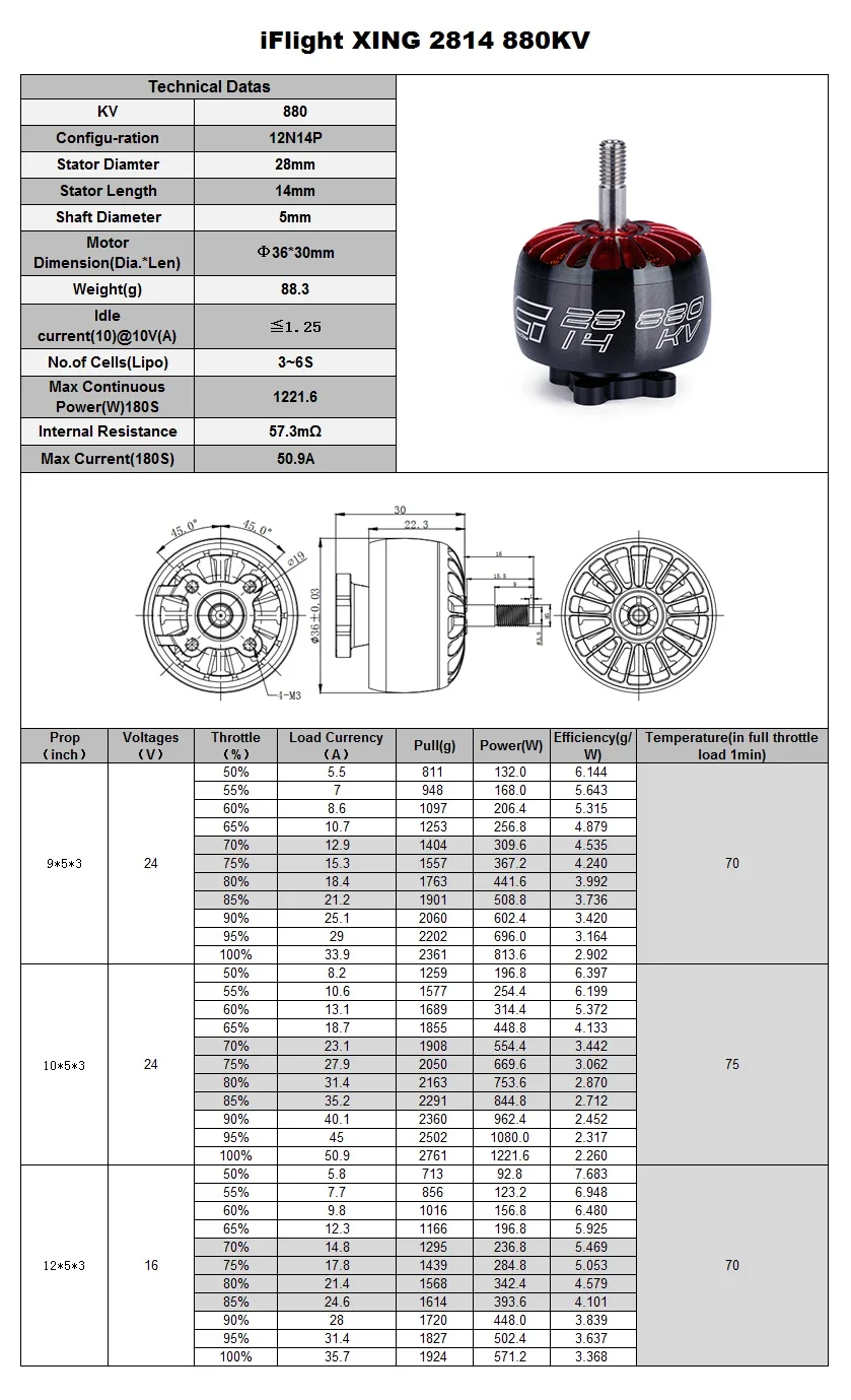 iFlight XING 2814 1100KV / 880KV 2-6S FPV NextGen Motor with 5mm Shaft compatible 9 inch 10 inch frame