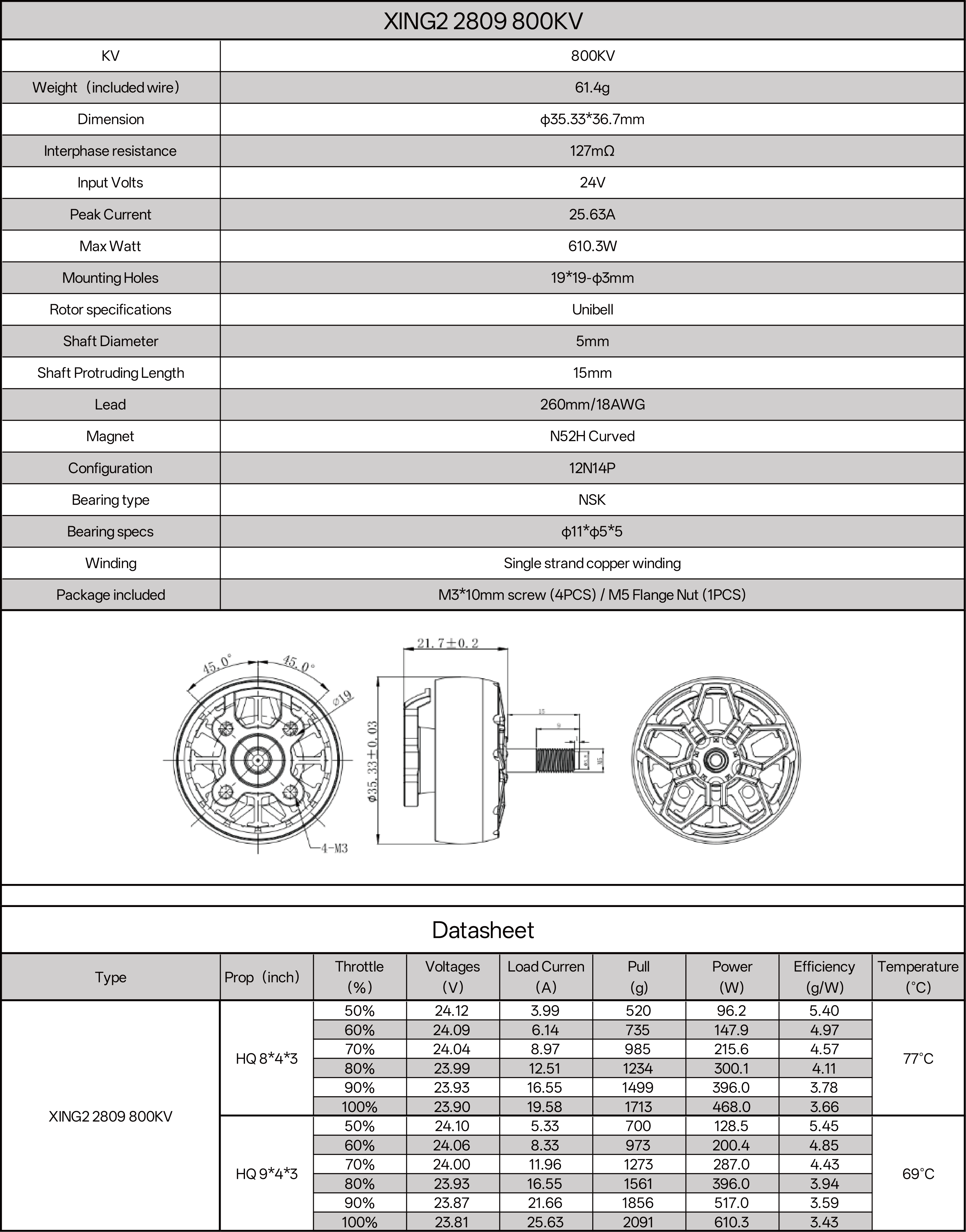 Model: XING2 2809 Motor