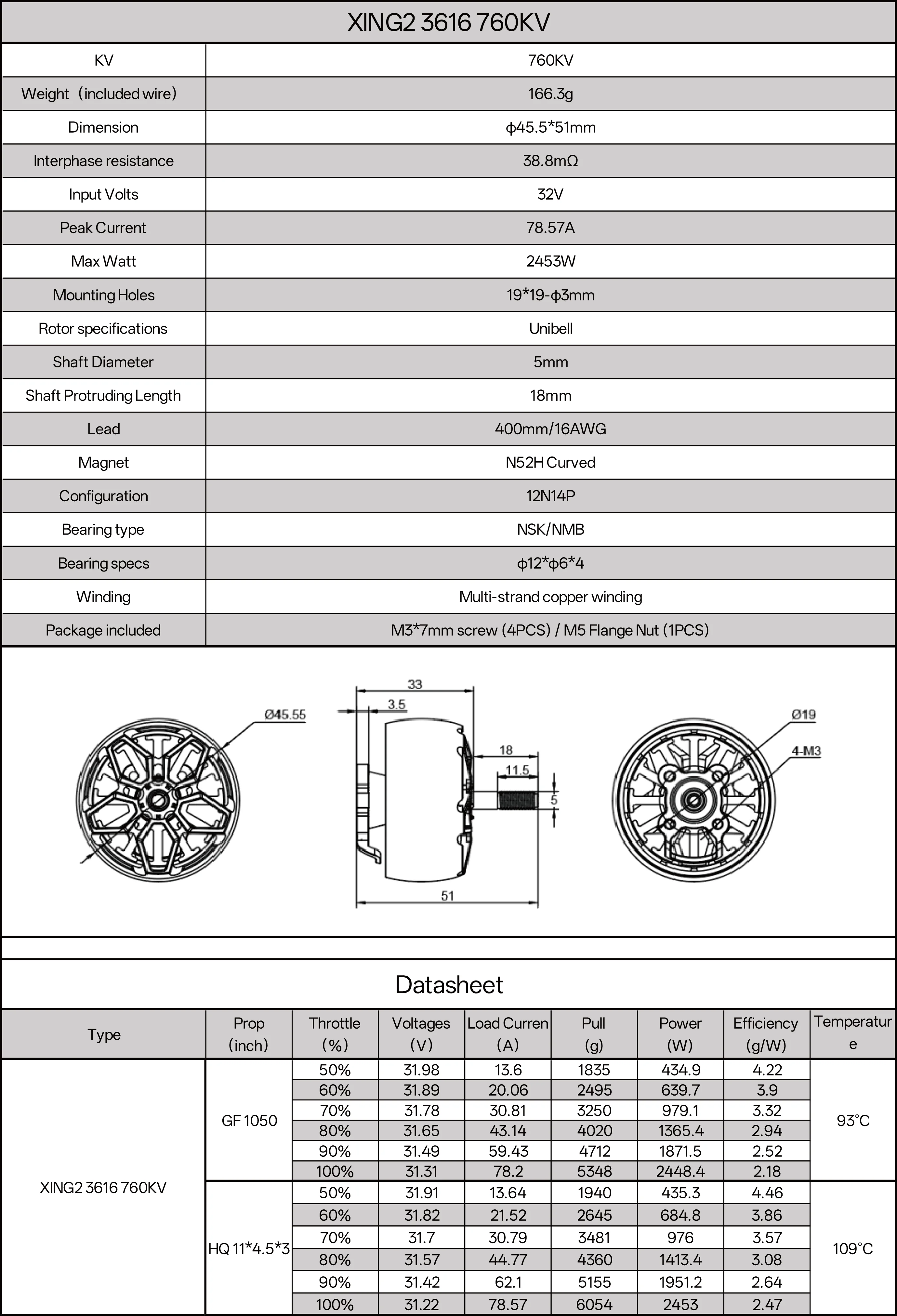 1 x XING2 3616 Brushless Motor