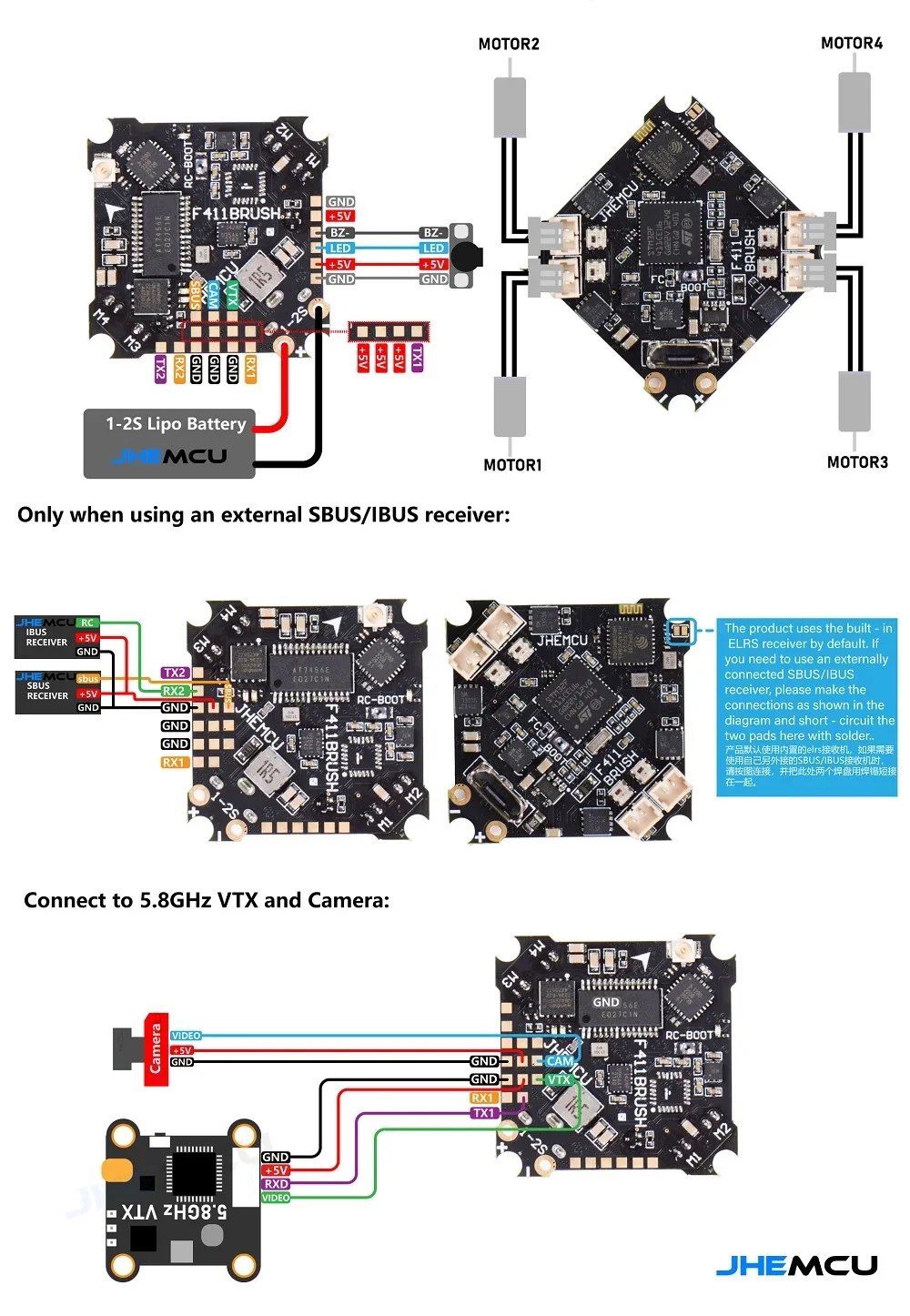 JHEMCU F411 BRUSH Flight Control Built-in ELRS 2.4G Receiver