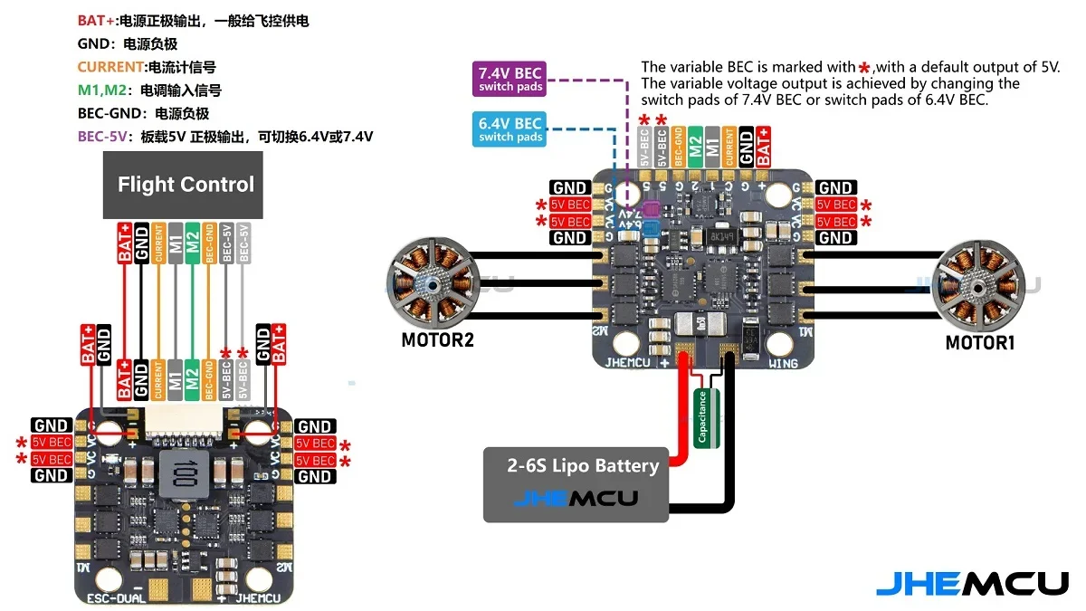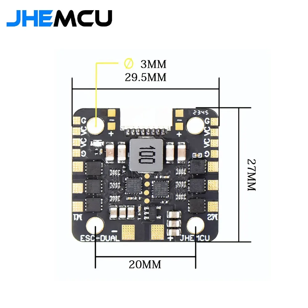 JHEMCU WING ESC-DUAL 40A BLHELI_S 2in1 40A ESC Built-in 5V BEC Current Meter 20X20mm 2-6S LiPo for RC Twin Engine Airplane
