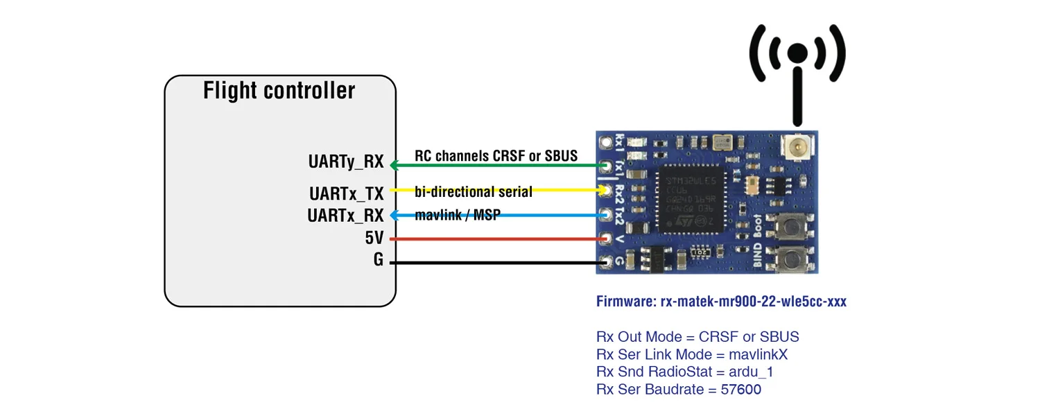 MATEKSYS mLRS 900MHz series using SX126x/STM32WLE5 LoRa chip are NOT compatible with ELRS 900MHz / Frsky R9 series using the SX127x. They will not bind with each other.