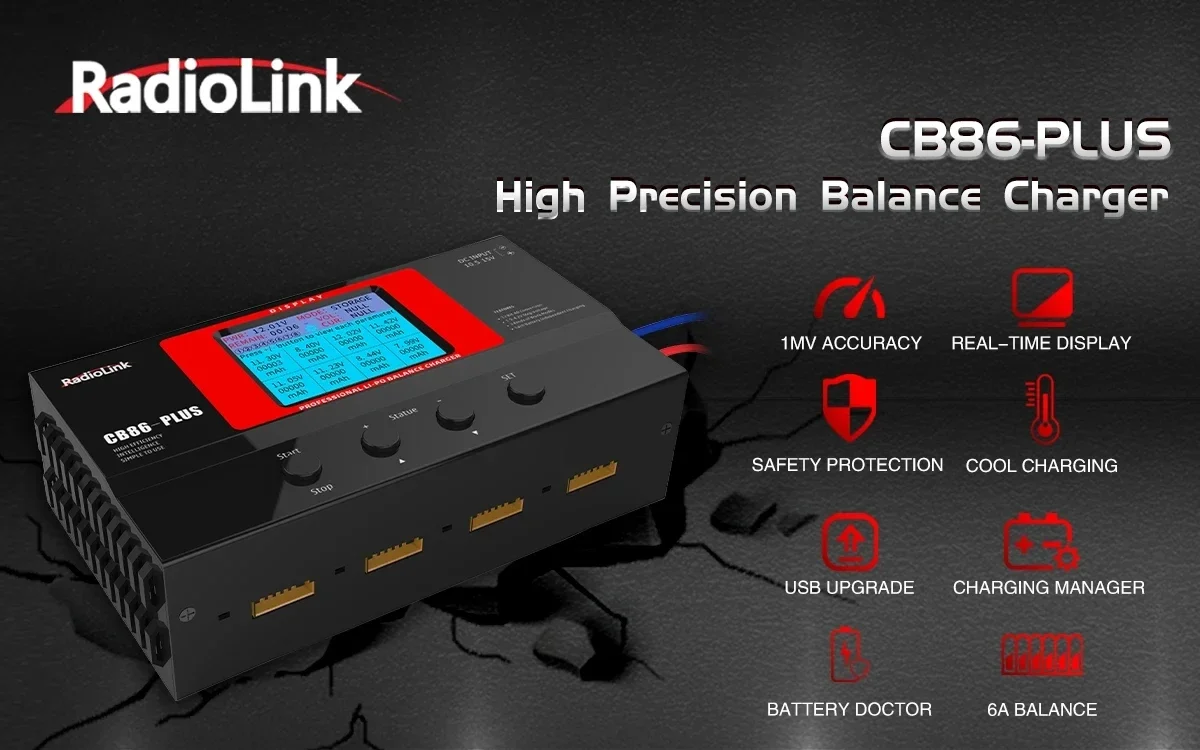 Radiolink Balance Charger CB86 Plus 1s-6s LiPo Lithium Battery Professional Charger 0.1-6A for FPV Drone Controller Transmitter