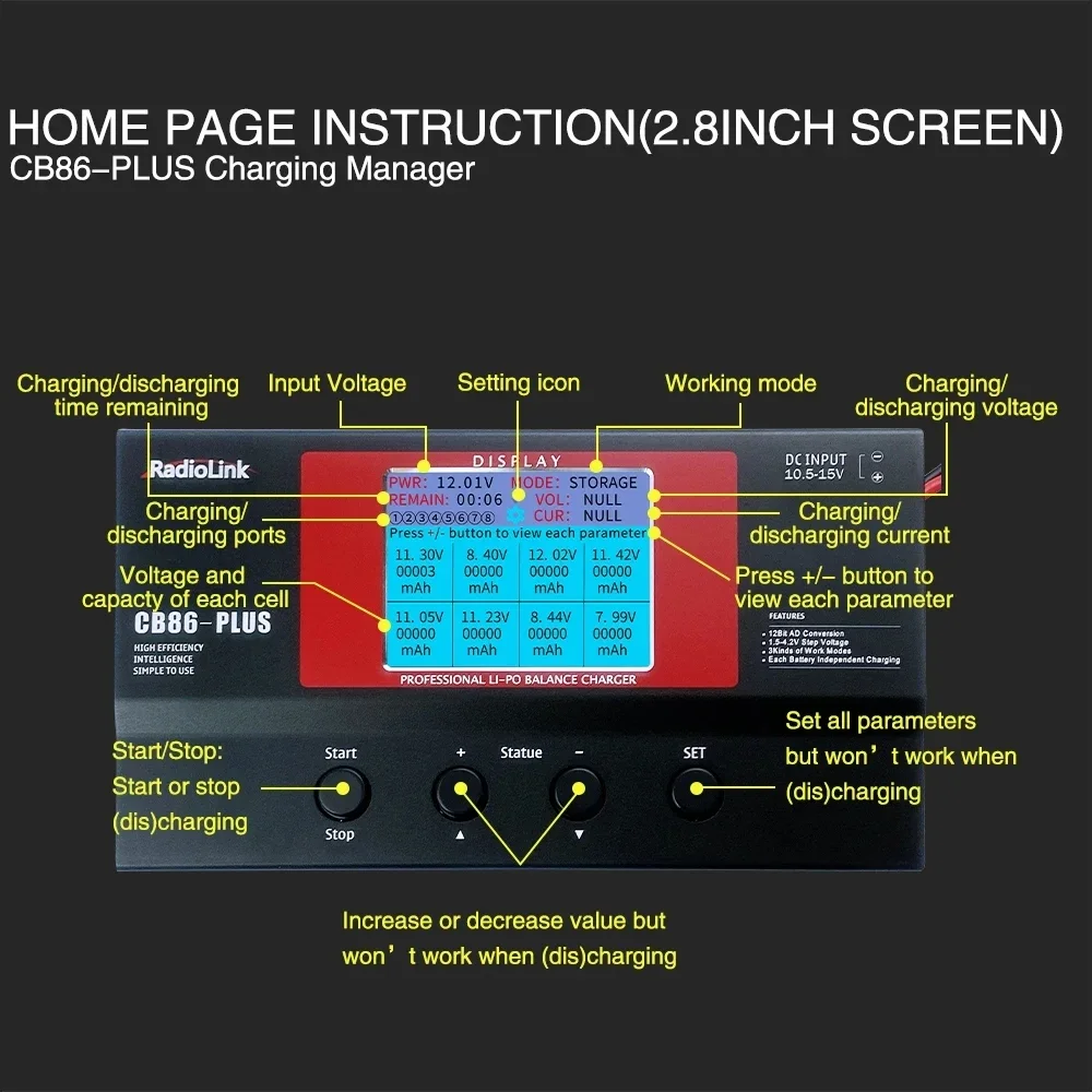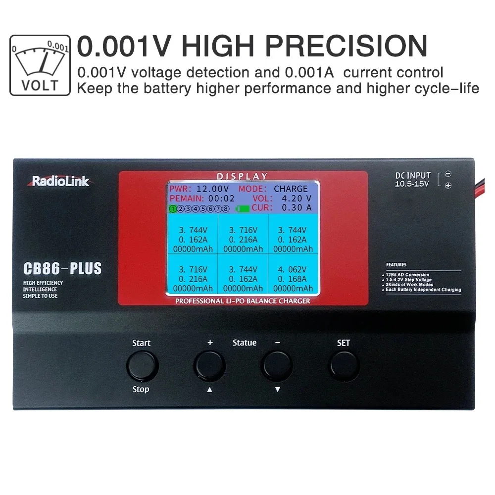 Radiolink CB86 Plus Balance Charger 1s/2s/3s/4s/5s/6s LiPo Lithium Battery Professional Charger 0.1-6A for RC FPV Drone/Controller/Transmitter Car/Boat Batteries
