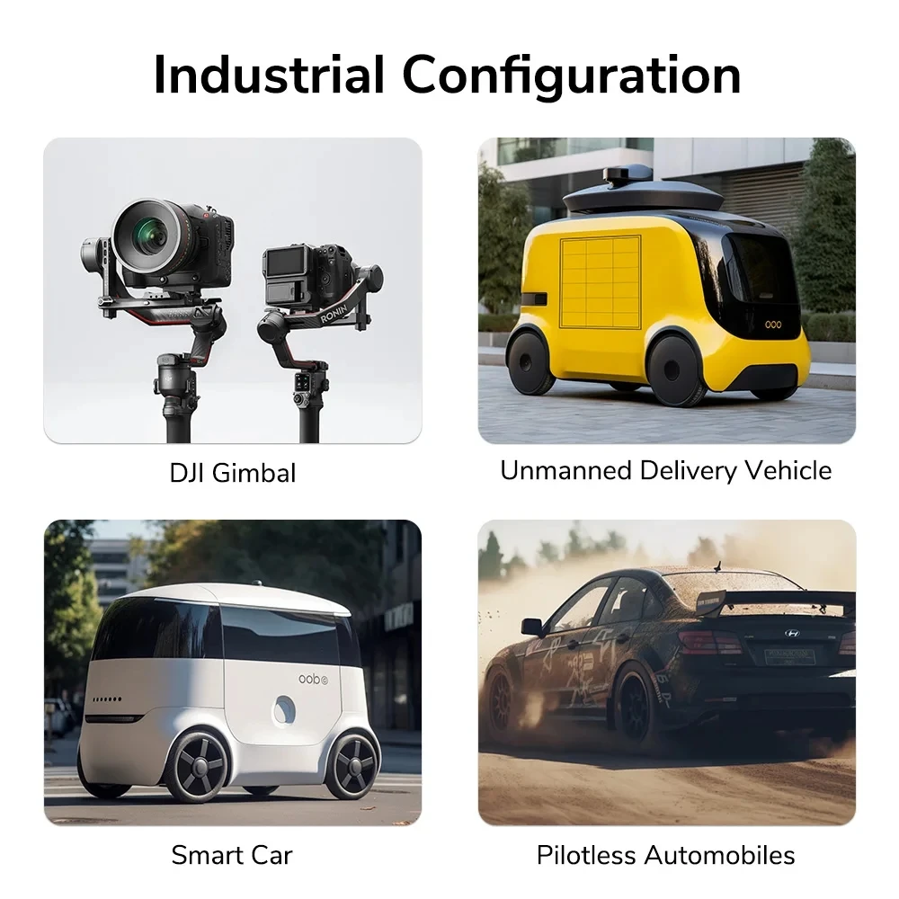 Industrial Configuration: Component selection, software and hardware reliability design, and product testing all implement industry standards, and ensure the reliability of the products. Suitable for smart cars, pilotless automobiles, DJI gimbal, and other cutting-edge UAV or car solutions. Component selection, software and hardware reliability design, and product testing all implement industry standards, and ensure the reliability of the products. Suitable for smart cars, pilotless automobiles, DJI gimbal, and other cutting-edge UAV or car solutions.