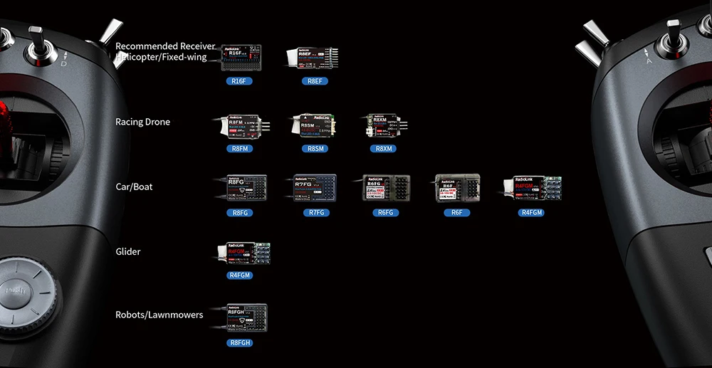 Compatible Receivers: R16FG(Std), R8EF,R8FM, R8SM, R8XM, R8FGH, R8FG, R7FG, R6FG, R6F, R4FGM, R4F