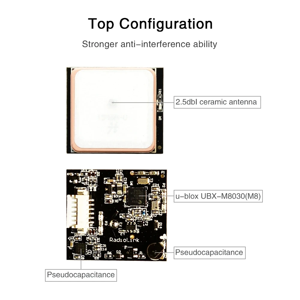 GPS decoder chip: Radiolink M10N GPS, with u-blox UBX-M10050(M10N), 72-channel, is much better than single GNSS 7N.