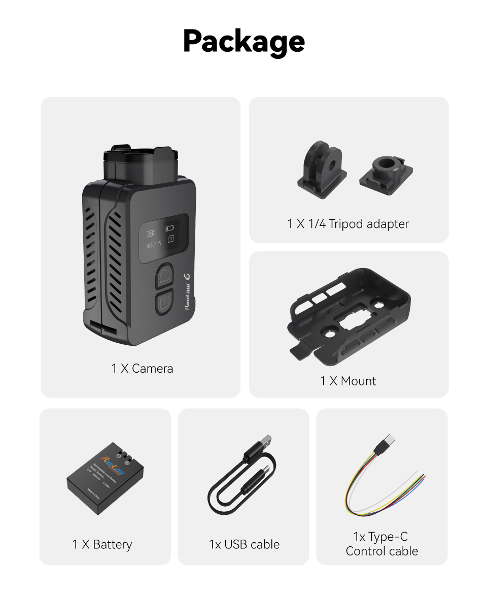 The RunCam 6 features crystal clear 4K Video resolution at 30fps, ideal for capturing high-definition footage of your action-packed adventures.